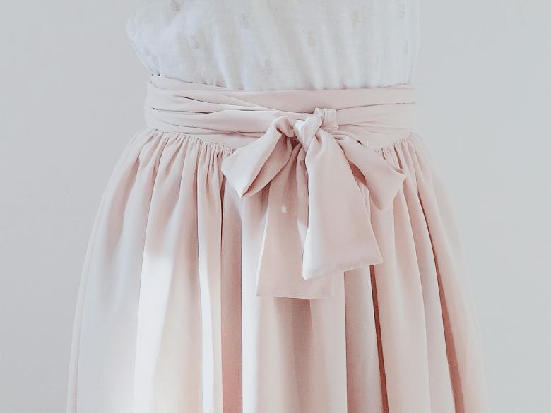 - La dernière étape consiste à préparer le châssis. Si vous envisagez de rendre la ceinture plus brillante et plus intéressante, vous devez fixer au préalable des perles, des strass et d'autres éléments sur le ruban. Cousez ensuite le ruban fini au milieu du dos et laissez les extrémités libres. Vous pouvez les utiliser pour faire un énorme nœud sur le devant. Si vous n'aimez pas cette idée, vous pouvez simplement coudre un ruban sur le haut de la jupe. Vous pouvez attacher les extrémités avec des boutons ou autre chose.