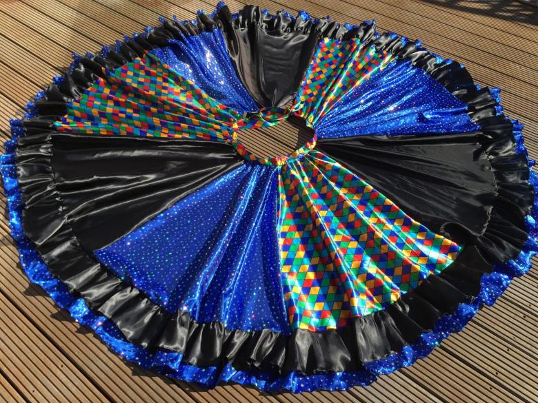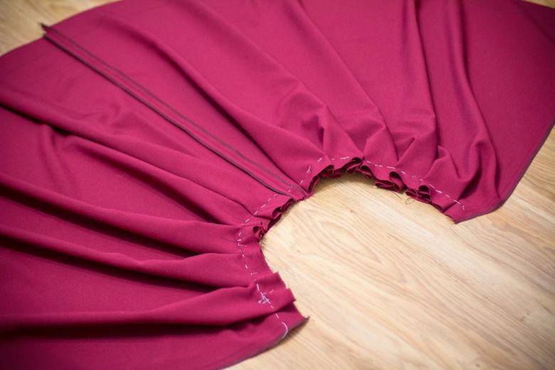 - Toutes les pièces doivent ensuite être cousues ensemble. Cousez les volants finis aux lignes indiquées sur la jupe de façon à ce que la couche inférieure soit toujours couverte par la couche supérieure.
