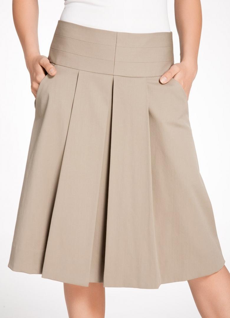 - Une jupe droite doit être fabriquée dans une matière dense, par exemple du lin, du jersey, du coton ou du tweed ;