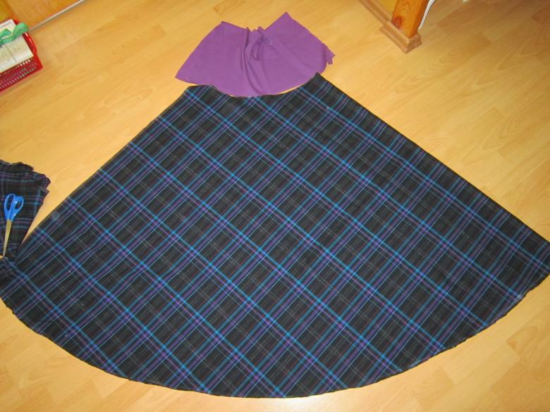 - La modélisation de la jupe commence par un jupon. Pour le coudre, il suffit d'assembler deux morceaux de tissu trapézoïdal en fonction de votre silhouette. Il n'est pas nécessaire d'ajuster la silhouette, car plus tard, des couches de tulle dissimuleront ces défauts.