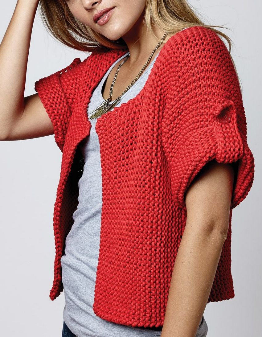 Une option intéressante pour l'été si vous tricotez avec des fils de coton. Se porte très bien avec une robe, et selon la longueur avec une jupe bouffante.