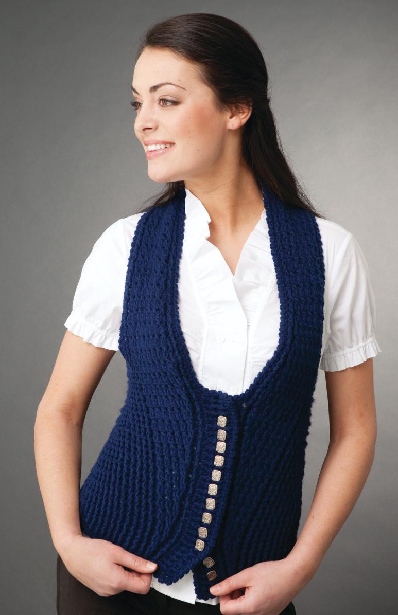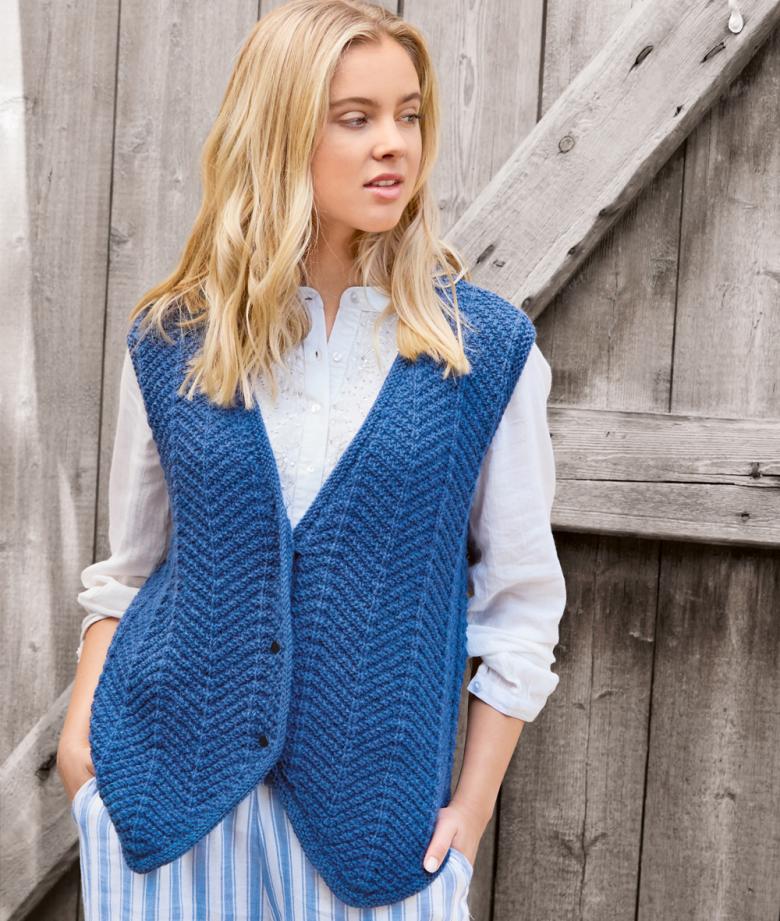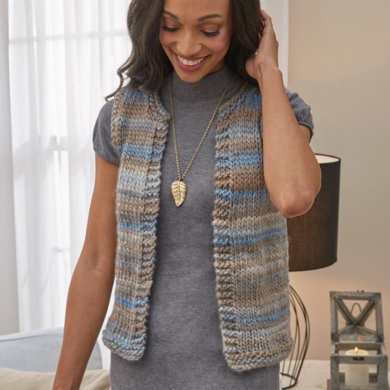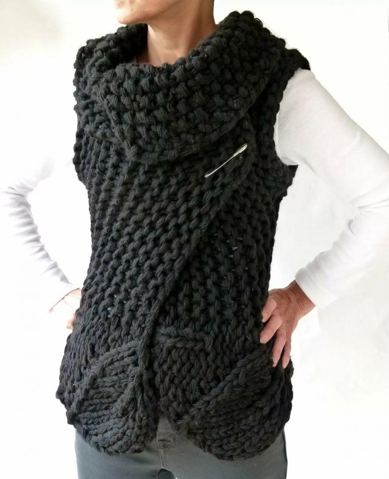 Une option rapide et facile pour un cardigan sans manches à hauteur des genoux, en tricot ou en crochet. Tricotez avec de grandes boucles.