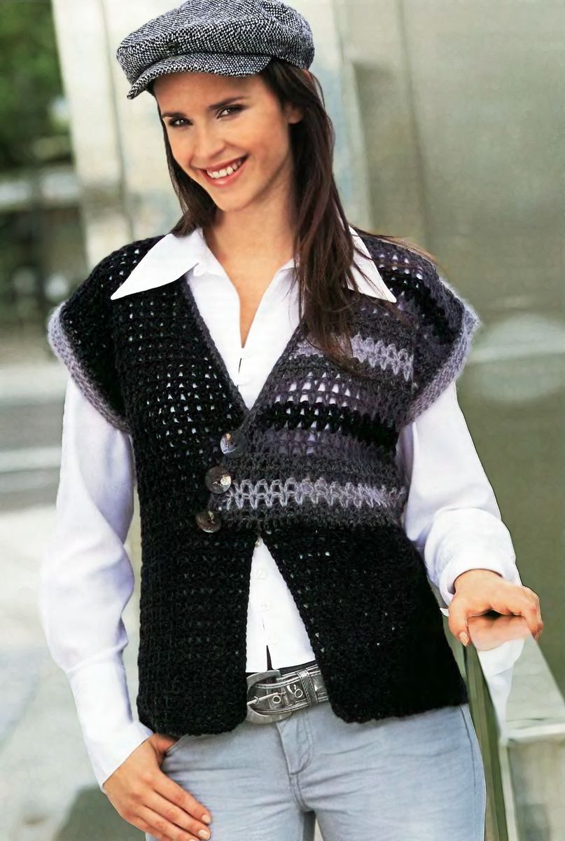 Comment tricoter une veste sans manches à l'aiguille et au crochet : variantes pour débutants avec la description des projets et avec des schémas.