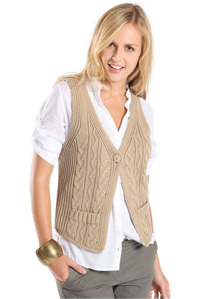 Tout look est complètement différent si une femme porte une telle veste sans manches. À porter de préférence avec des pantalons et des jeans.