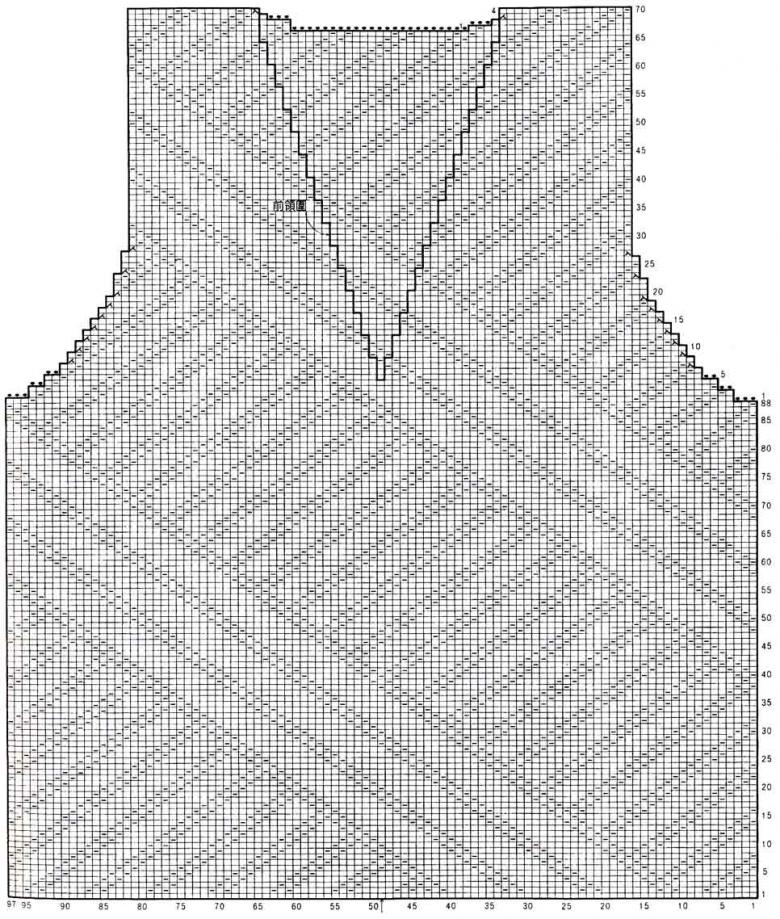 - L'encolure est formée de la manière suivante : la pièce avant est divisée en deux parties égales et placée sur des rayons égaux. Tricotez en enlevant le même nombre de boucles des deux côtés.