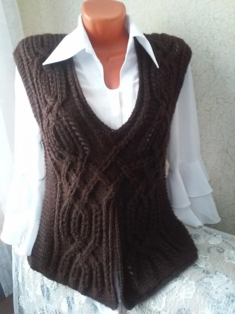 Sans manches, un article élégant et unique qui peut être porté au bureau, où le code vestimentaire ne permet pas de porter des pulls volumineux, et pour une promenade par une fraîche journée d'automne.