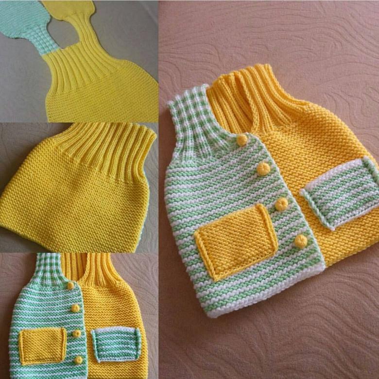Souvent, les mères et les grands-mères tricotent des objets intéressants et pratiques pour les enfants. Attacher une veste sans manches signifie prendre soin de votre enfant, car elle est confortable et chaude.
