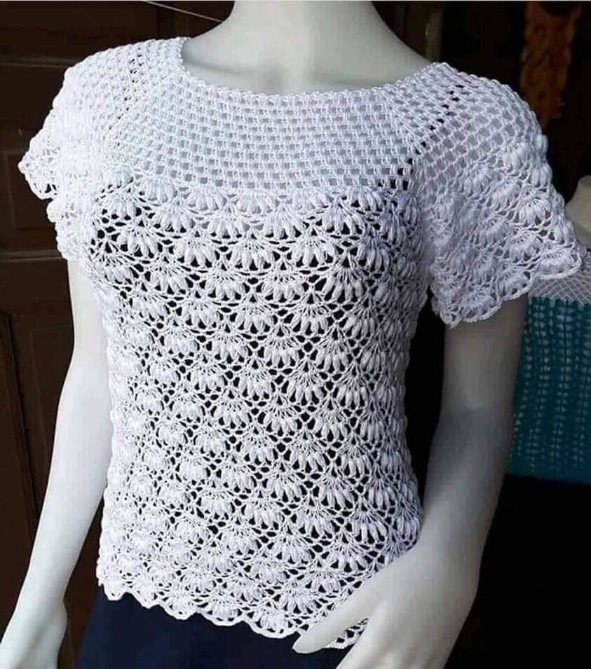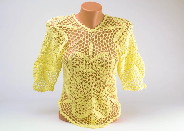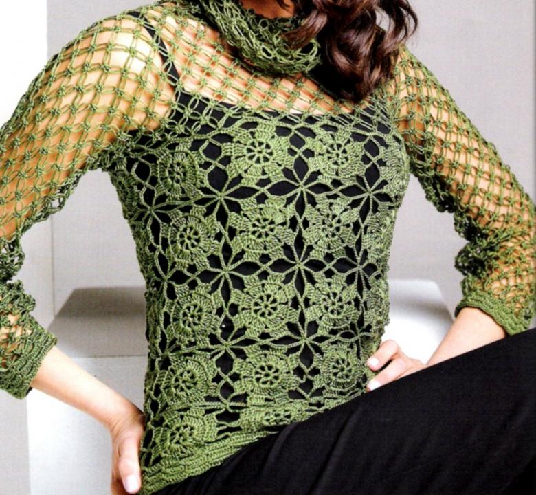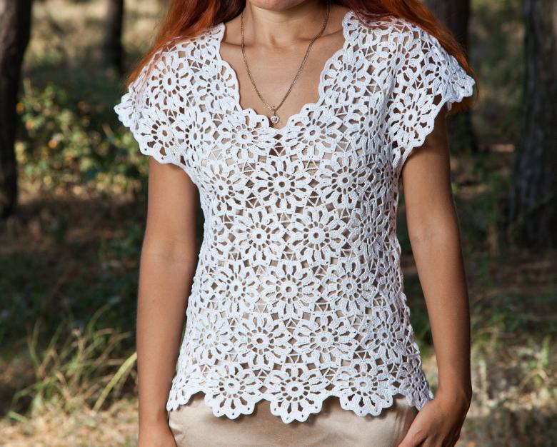 De nombreux modèles d'été sont crochetés sous la forme d'un t-shirt, avec une manche, sans manches ou avec une épaule tombante. Les motifs au crochet ne sont pas seulement choisis pour leur beauté. Afin de ne pas se tromper dans le choix d'un modèle ajouré, il est important de prendre en compte les particularités de votre physique. Les objets noirs et blancs reliés par le crochet selon le même motif sont perçus comme des objets de conception différente.
