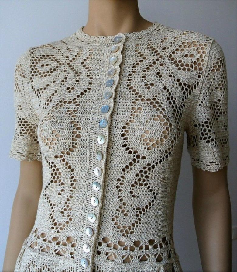Les blouses à col ras du cou en crochet avec étages déboutonnés sont souvent réalisées à partir d'un patron commun. Seuls la longueur et le motif diffèrent, mais ils sont toujours un ajout frappant aux ensembles d'été.