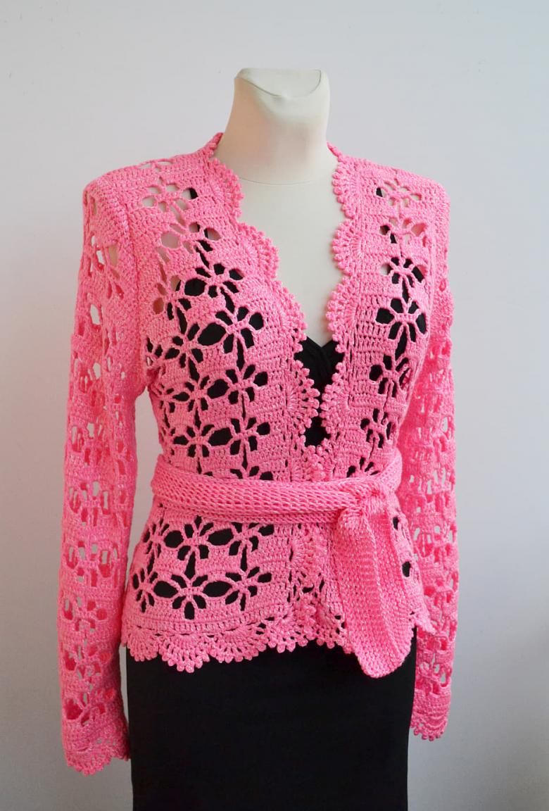 Les grands motifs ajourés ont un aspect spécifique - ils sont rarement portés en raison de la forme de votre corps. Pour qu'une pièce au crochet plaise pendant de nombreuses années, il est bon de se demander avec quel type de couverture ou de T-shirt elle sera portée et si elle sera chaude avec ce type de " doublure ".