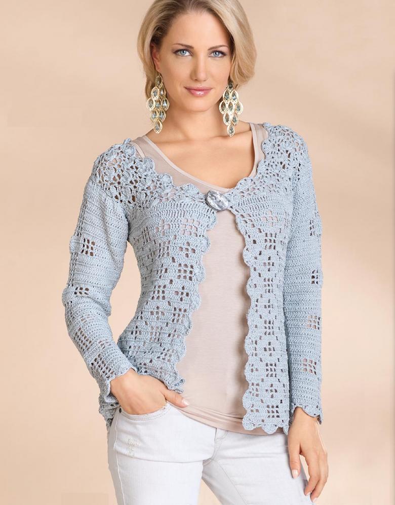 Nous vous suggérons de tricoter un long cardigan, un boléro court ou un chemisier de taille moyenne. Des descriptions, des diagrammes et des échantillons vous aideront à comprendre comment crocheter une blouse ajourée pour créer votre chef-d'œuvre fait main.