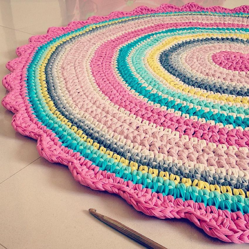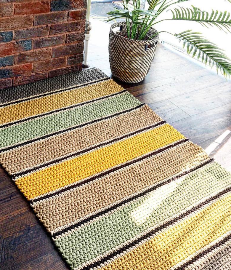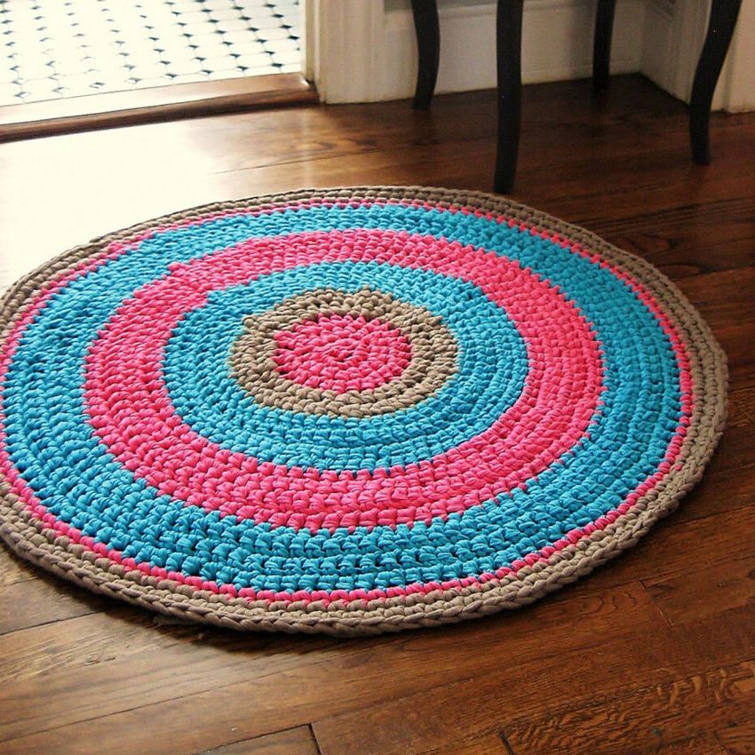 Ce produit vous permettra non seulement de diversifier votre décoration intérieure et d'occuper vos mains, mais vous contribuerez à la conservation de l'écologie. Après tout, un tapis tricoté, c'est une chose pour les âges, qui ne s'abîmera pas. Et s'il est déchiré, le fil se décompose rapidement et ne cause aucun dommage à la nature.