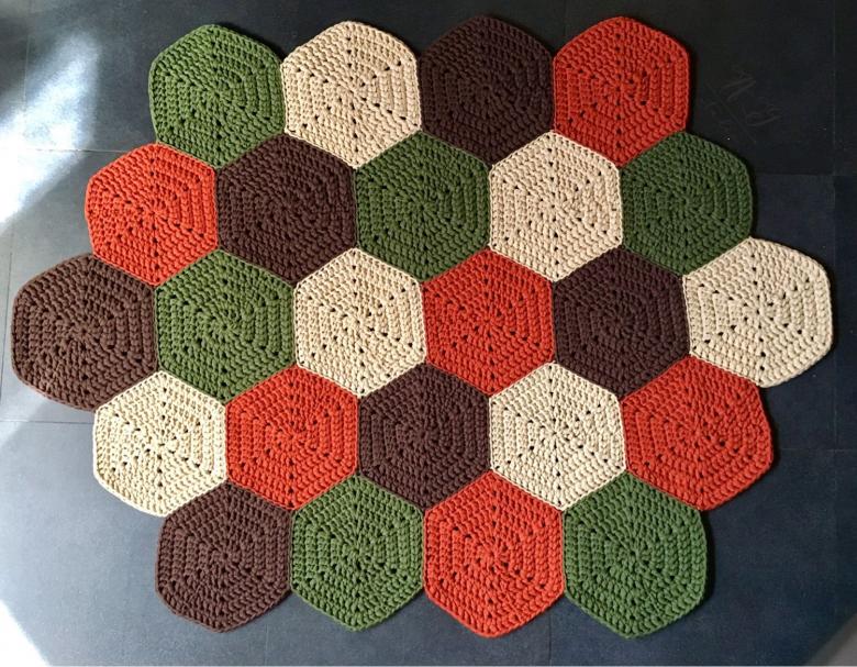 - Après avoir terminé l'assemblage prend du fil avec un crochet, ils ont attaché les bords du tapis.