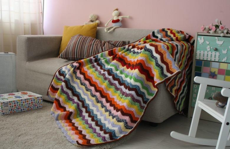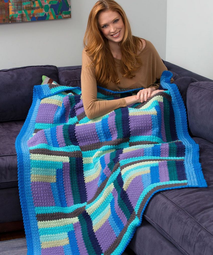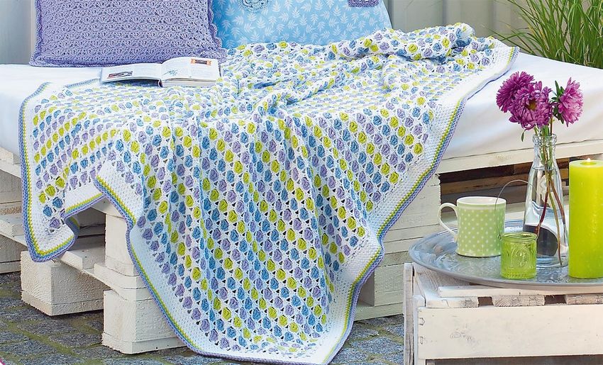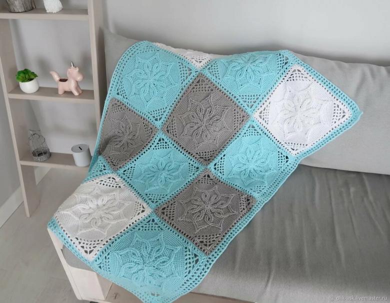 Un plaid, relié à la main, sera une superbe décoration pour n'importe quelle maison. Une riche sélection de fils vous permet de réaliser une couverture de n'importe quelle taille et de n'importe quelle couleur. La composition hypoallergénique du fil convient même aux très petits.