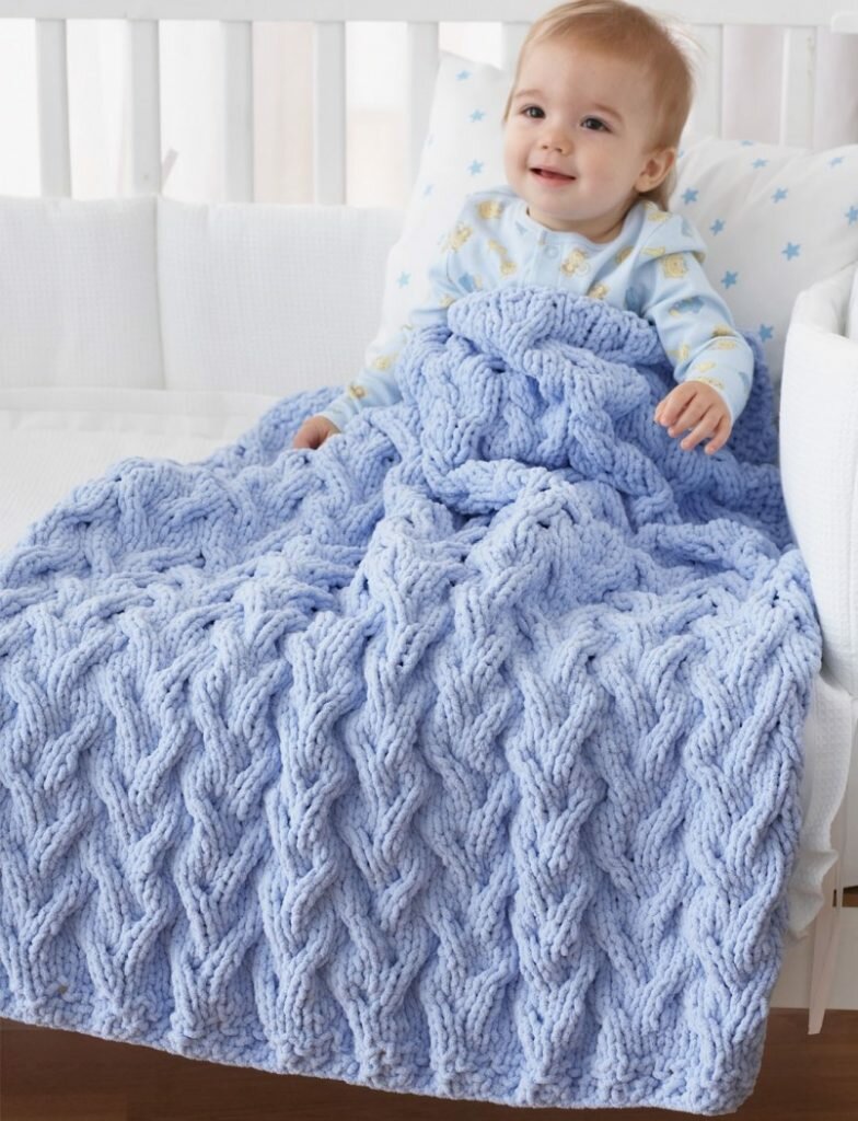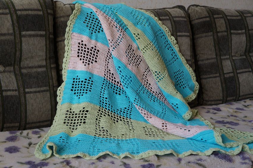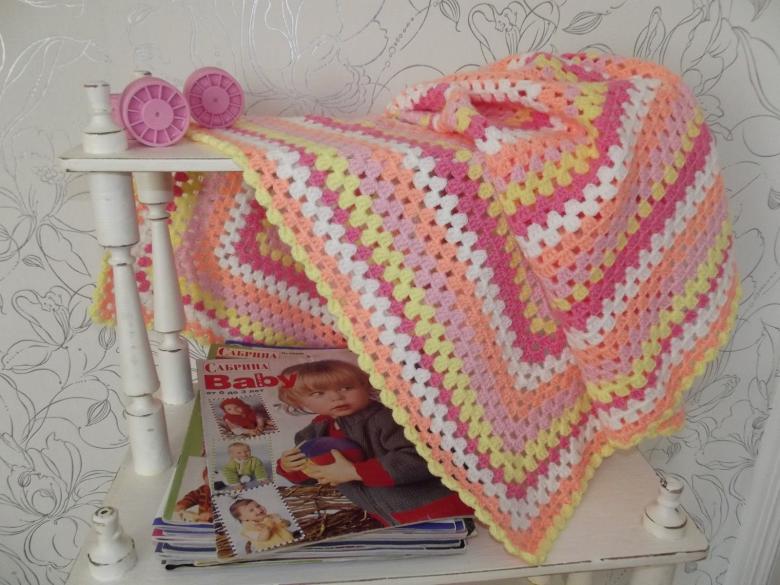Un large éventail de fils et de couleurs vous permet d'intégrer la couverture dans n'importe quel décor. Les couvertures faites à la main conviennent aux enfants. La couverture faite maison donnera au nouveau-né un sentiment de confort et de chaleur par temps froid.