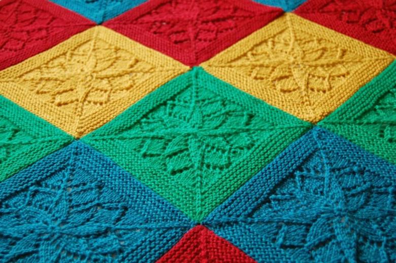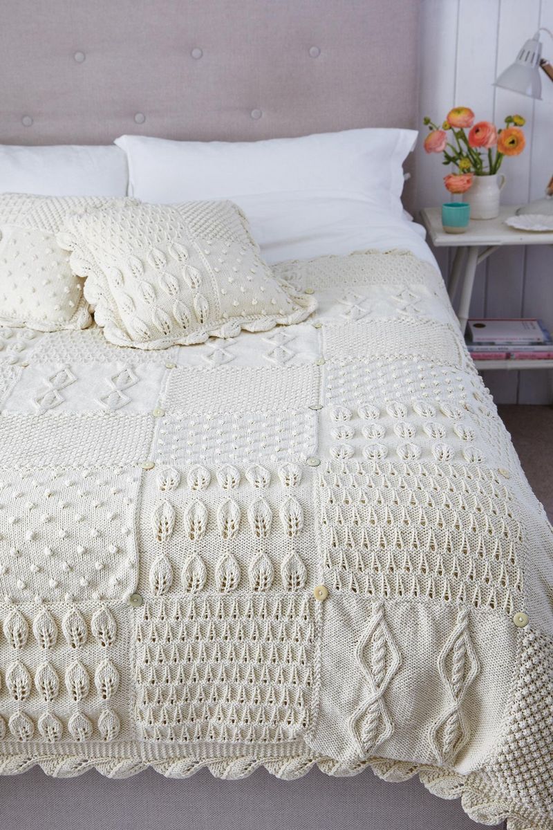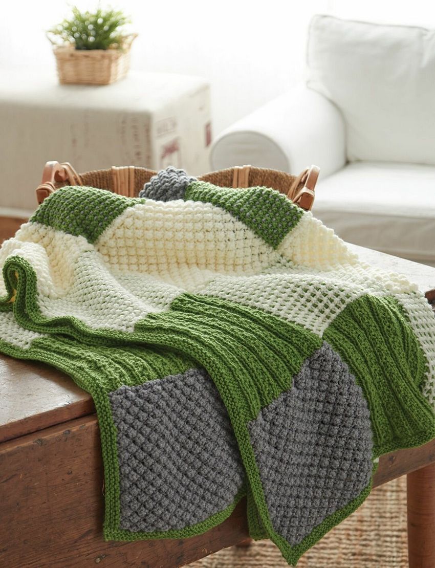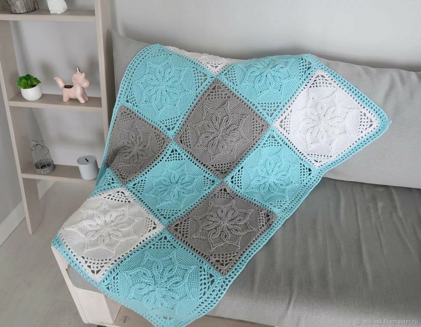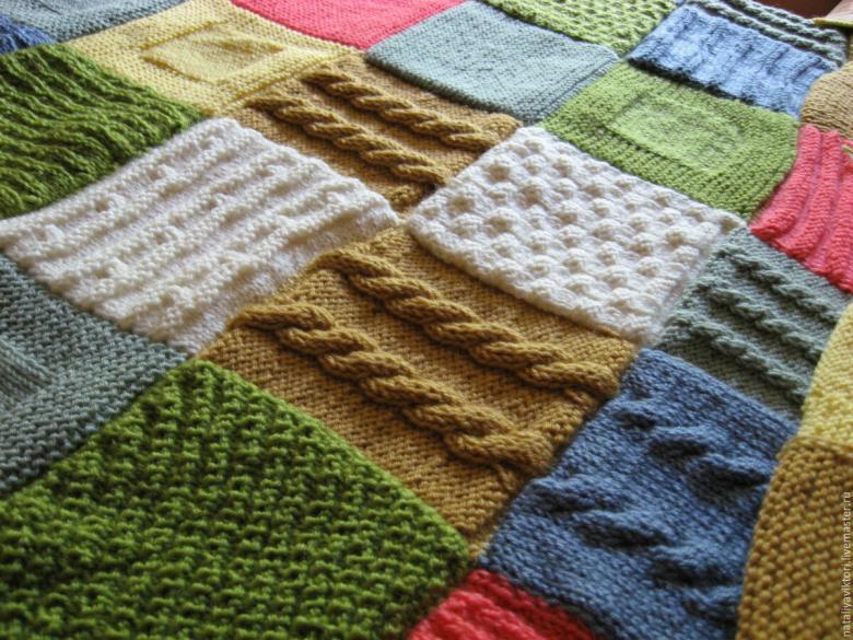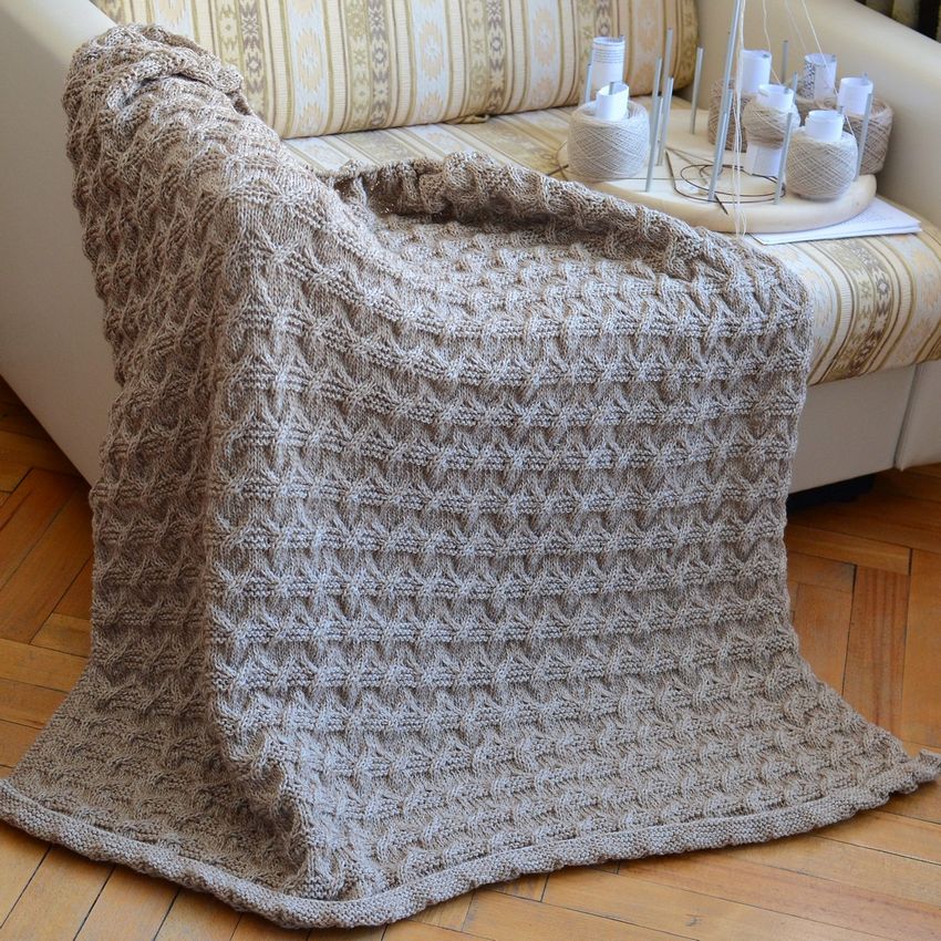 De tels plaids sont faciles à exécuter, et en cas d'erreur, vous n'avez pas besoin de défaire tout le tissu. Il suffit de refaire un élément. En utilisant différents modèles, les débutants peuvent facilement apprendre une variété de techniques de tricotage. De plus, une telle couverture est facile à plier grâce au grand nombre de points de couture.