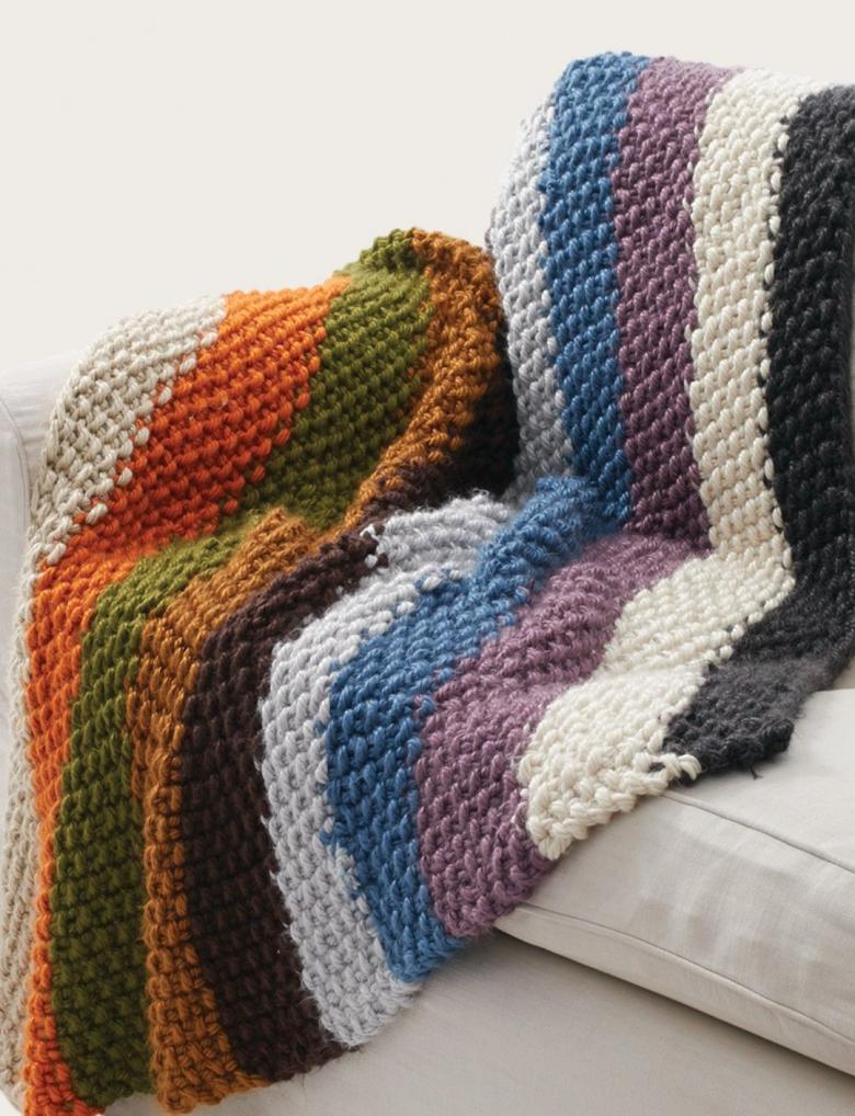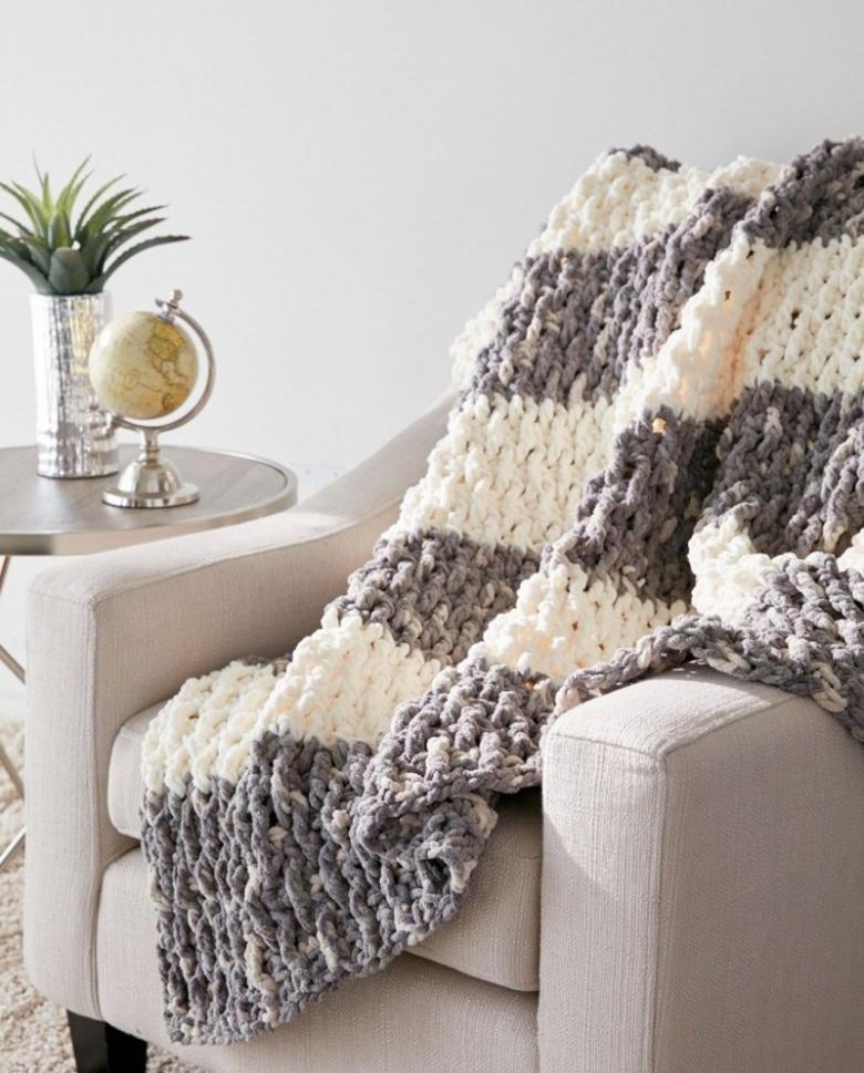 Les plaids à grosses mailles sont très populaires de nos jours. Ils sont souvent fabriqués à l'aide d'un ruban peigné spécial plutôt que d'un simple fil.