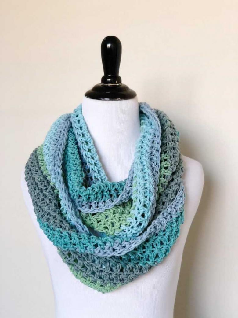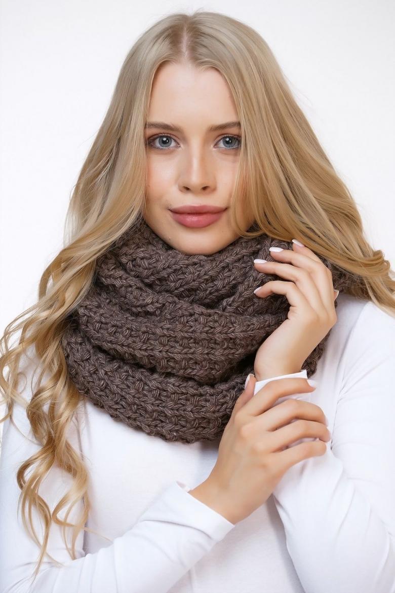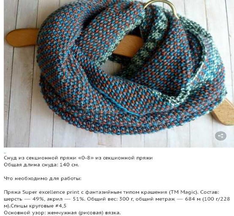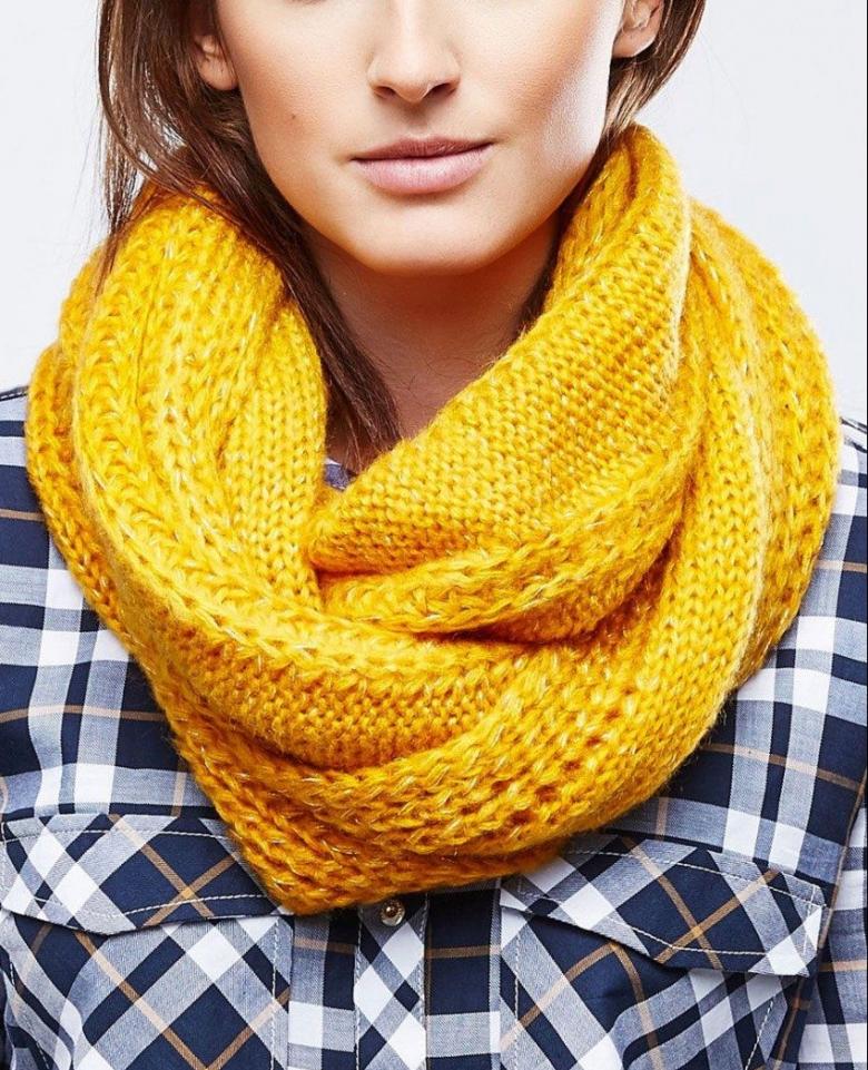Le nom lui-même dit tout : un foulard noué en cercle. Ce foulard est à la mode avec diverses attaches ou avec des garnitures décoratives. Vous pouvez tricoter une écharpe avec le fil de votre choix, dans la longueur et la largeur qui vous conviennent. Comment tricoter un snood, un licou, une écharpe circulaire est assez facile même pour un débutant.
