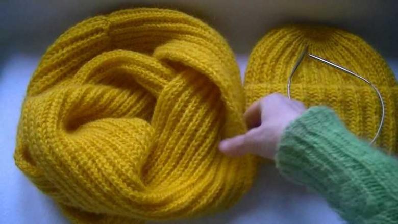 - Si vous tricotez avec deux aiguilles, vous pouvez le terminer s'il vous semble trop court mais vous devez le coudre.