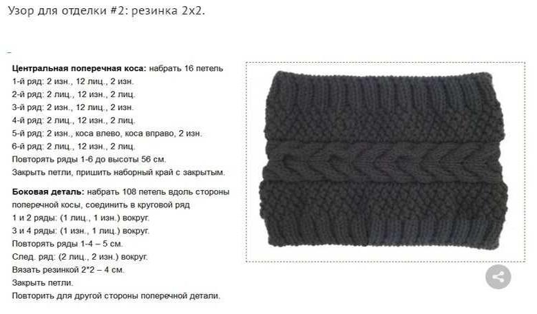 Vous pouvez également varier la largeur de l'écharpe en fonction de vos préférences : le plus douillet serait un fil d'une largeur de 35 cm, une pièce avec un fil fin est tricotée avec une largeur plus étroite d'environ 20 cm afin que vous puissiez l'enrouler autour de votre cou plusieurs fois.
