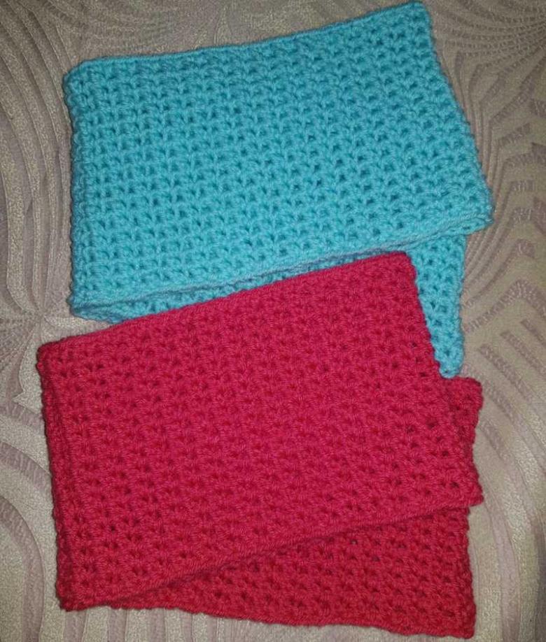 Les écharpes pour enfants sont tricotées en fonction de l'âge de l'enfant. Leur largeur varie de 15 à 20 centimètres, leur longueur de 1 mètre à 1,2 m.