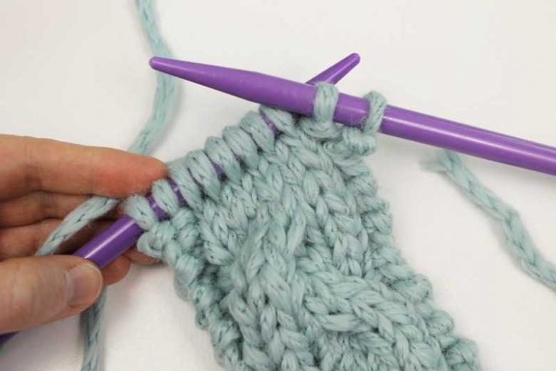 - 1er rang : tricotez toutes les mailles vers la droite.