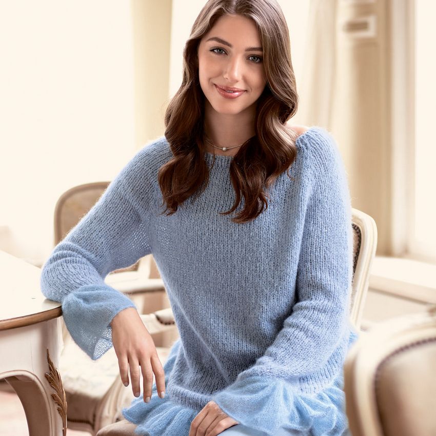 Accrochez tous les fils perdus. Tout votre sauteur est prêt. Vous pouvez décorer le pull terminé avec des broderies ou des rubans, coudre sur le bord de la dentelle. Tout cela ajoutera du chic et du style au produit fini. Et surtout, il s'agira d'un chef-d'œuvre exclusif.