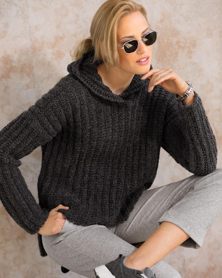 Les principales parties du pull-over commencent par un élastique. L'élastique a une hauteur de 5 à 10 cm. Pour une coupe ample, une maille toutes les 10 mailles après l'élastique.