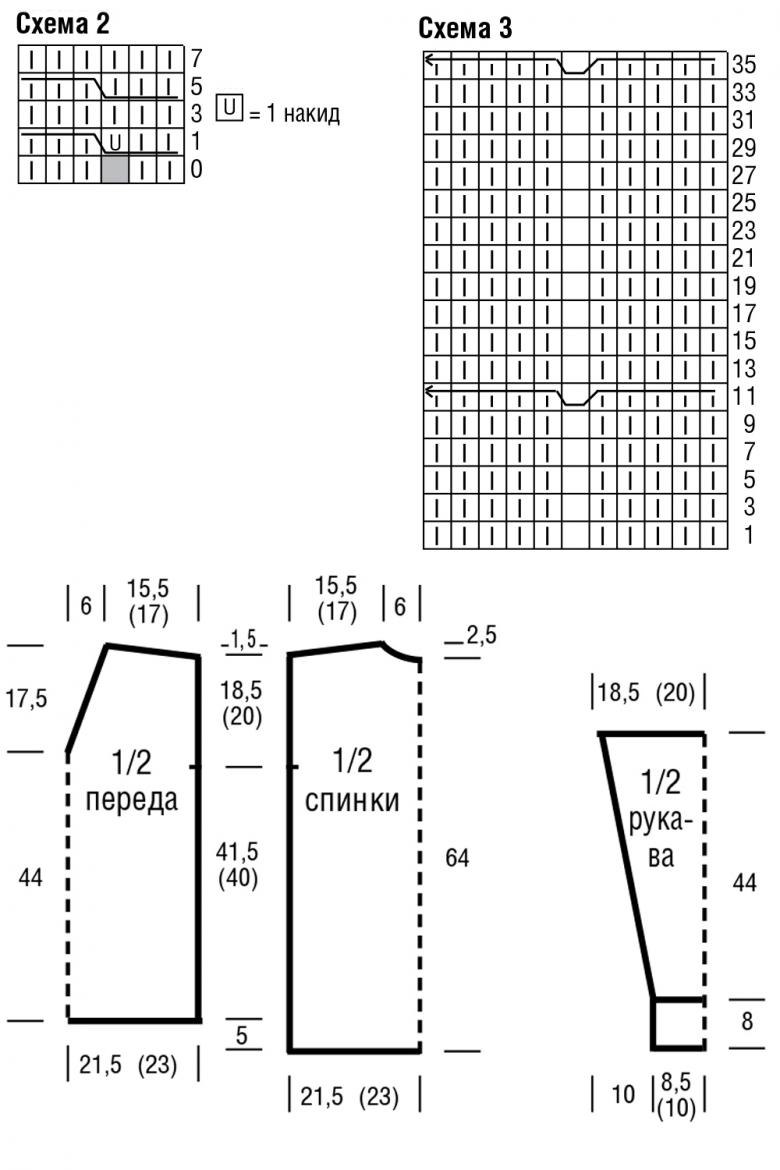 Fermez trois mailles de l'encolure dans le premier rang et trois mailles dans le deuxième rang. Tricotez les épaules selon le patron jusqu'à la longueur de l'article. Les coutures des épaules doivent être fermées en biais. La moitié des points restants. Du côté de la manche, fermez d'abord la première moitié des boucles, après un rang la deuxième moitié.