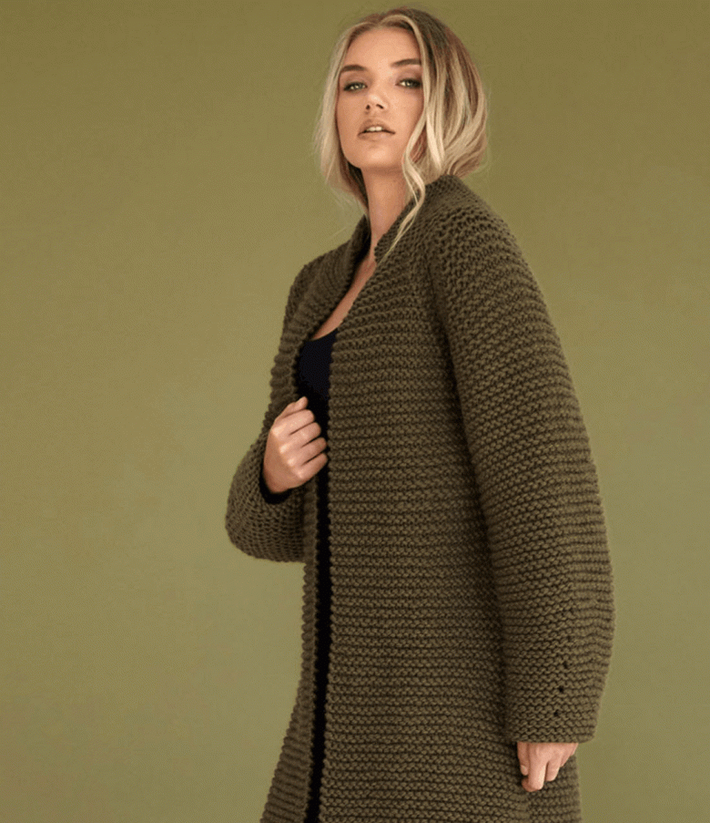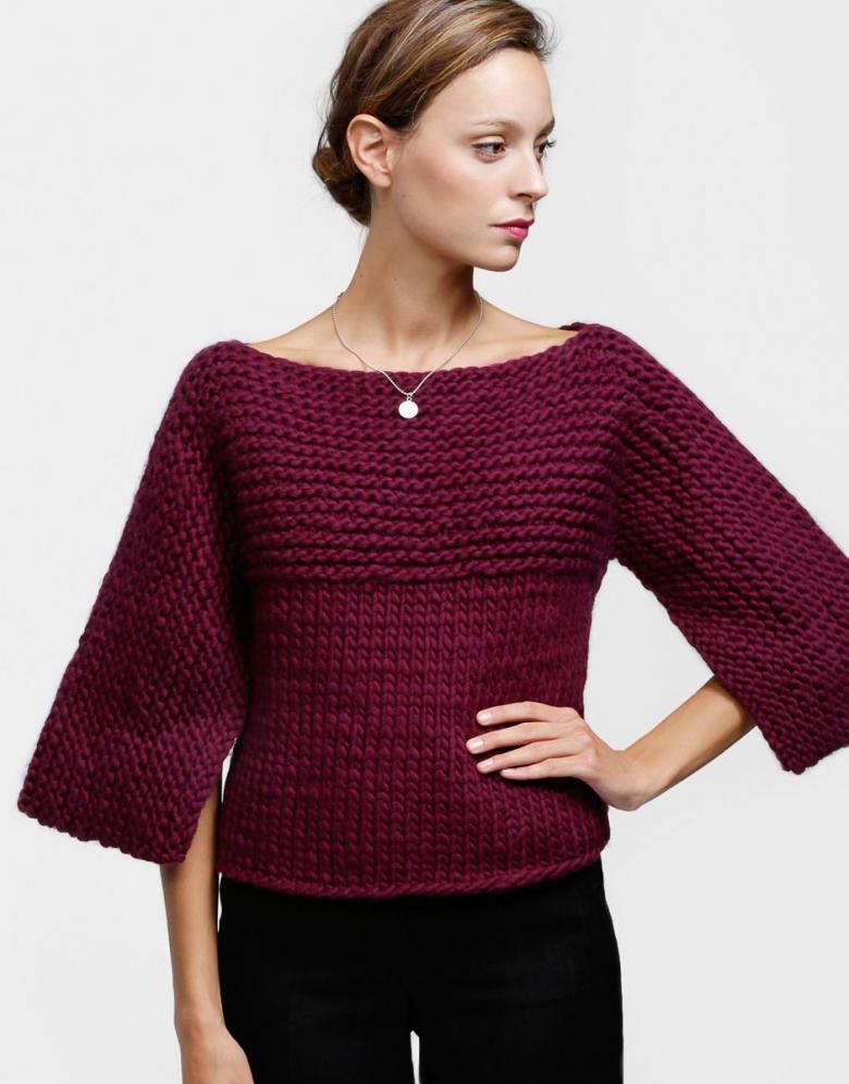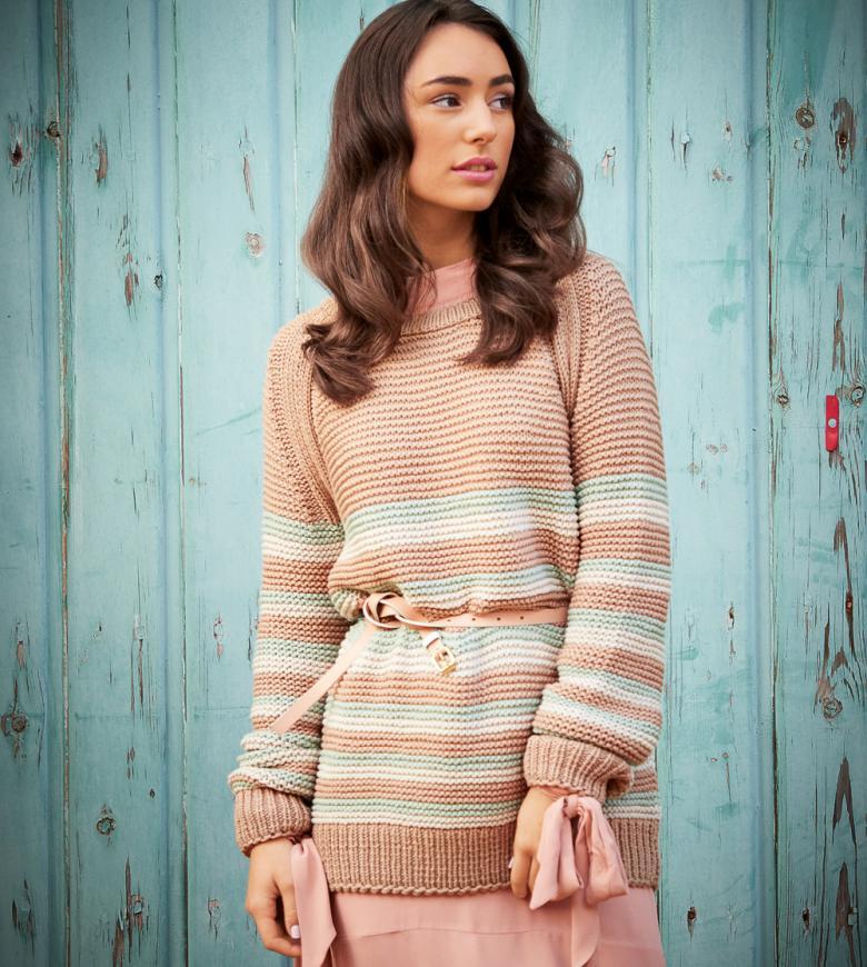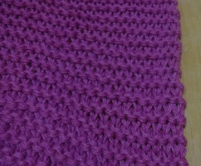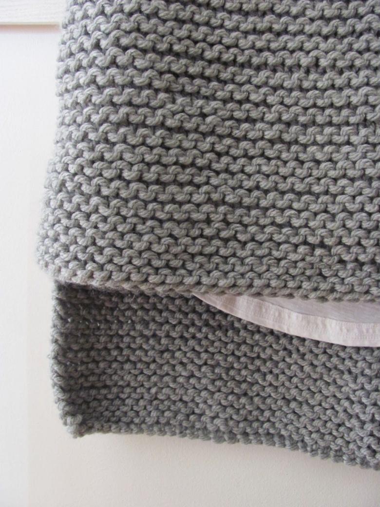 L'idée est d'alterner les rangs avec deux types de boucles. Le résultat final est un tissu tricoté en châle qui a un aspect intéressant avec ses rayures horizontales et convexes. Le motif à rayures ajoute du charme et du caractère unique au vêtement.
