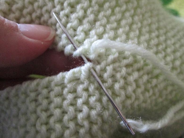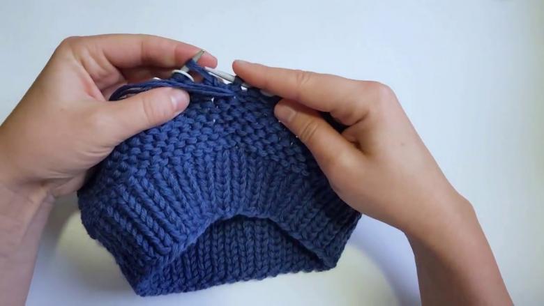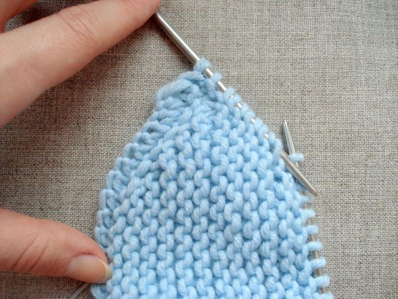 - Les rangs (à partir du repère) sont tricotés en alternant les mailles (premier rang - face, deuxième - face, troisième - encore face, et ainsi de suite jusqu'à la fin du travail).