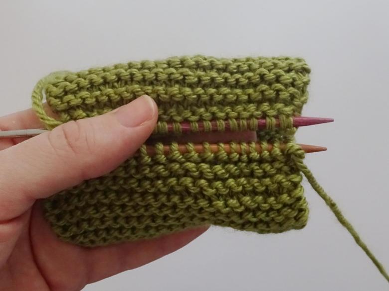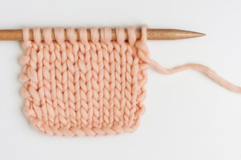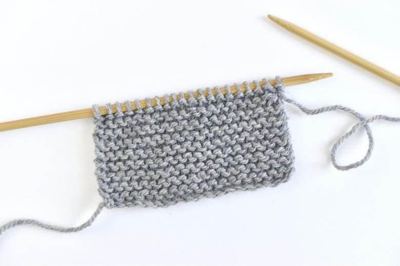 - tricotez tous les rangs en utilisant uniquement les mailles droites ;