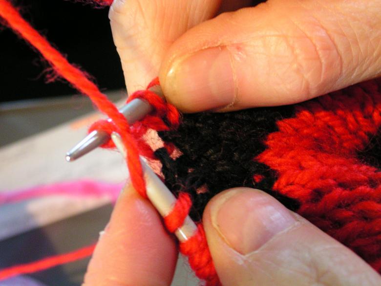 - Ne retournez pas la pièce, continuez à tricoter sur l'endroit.