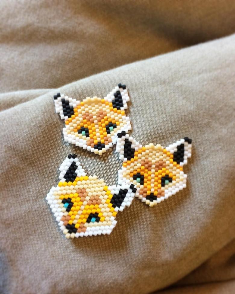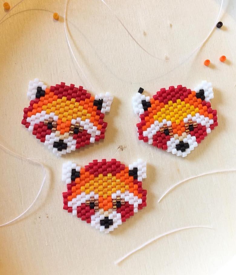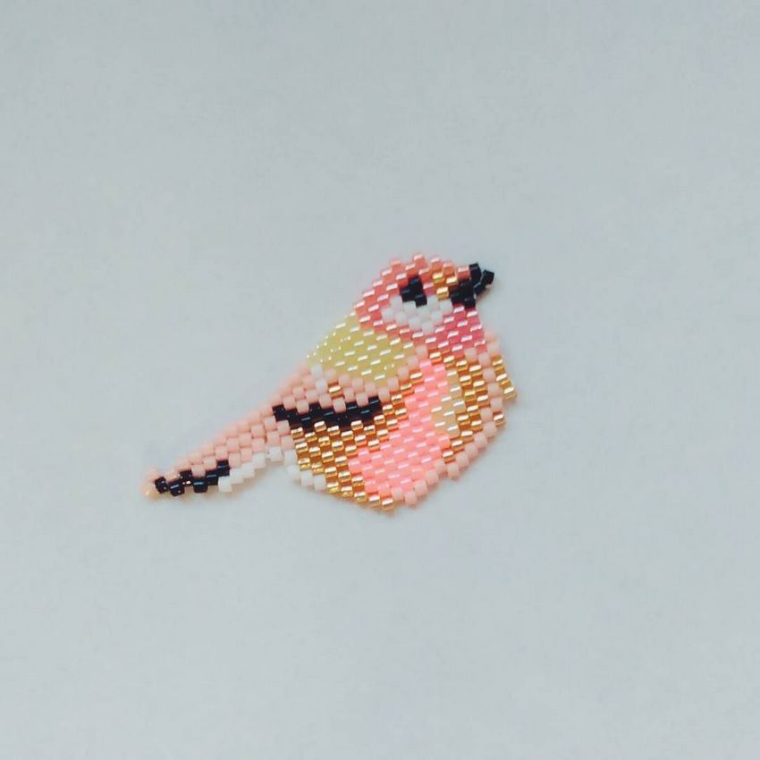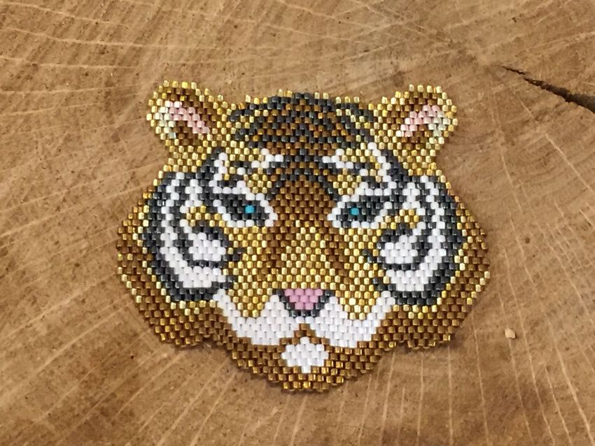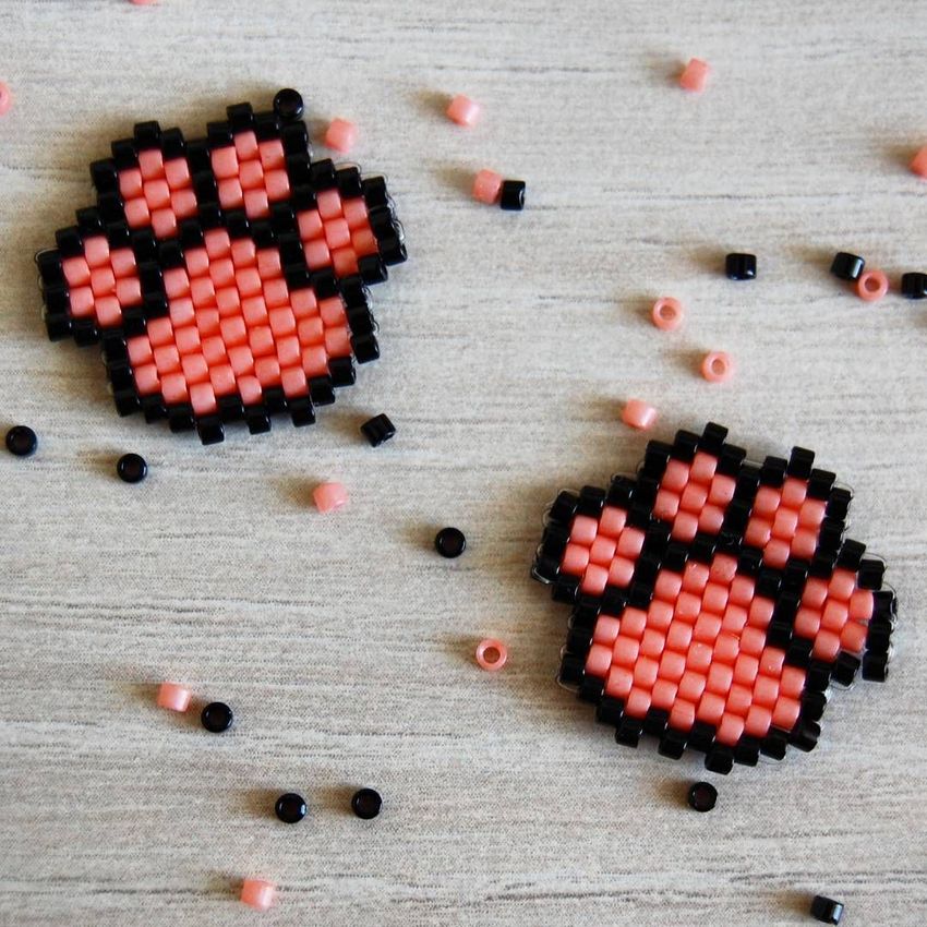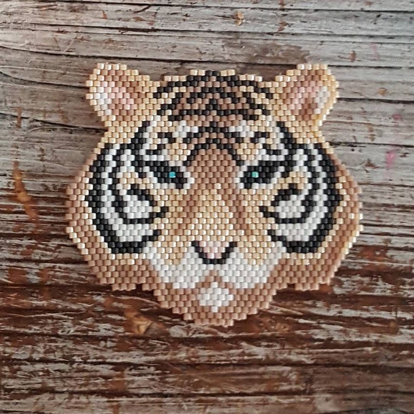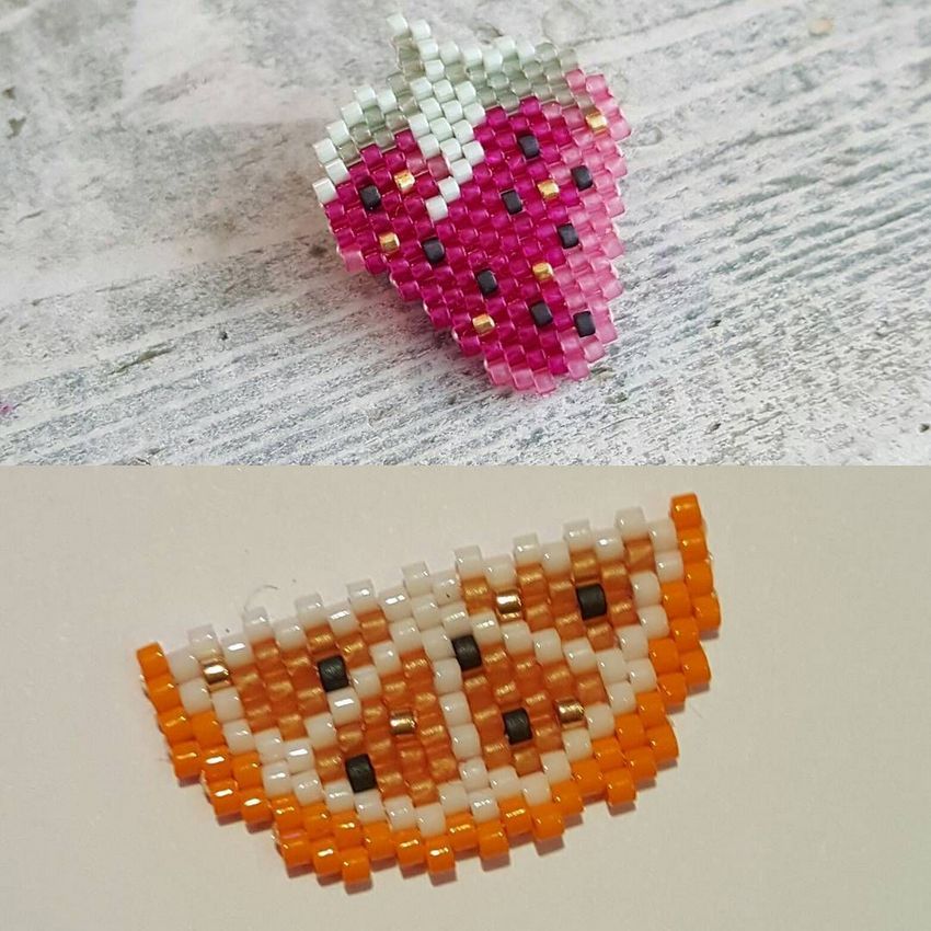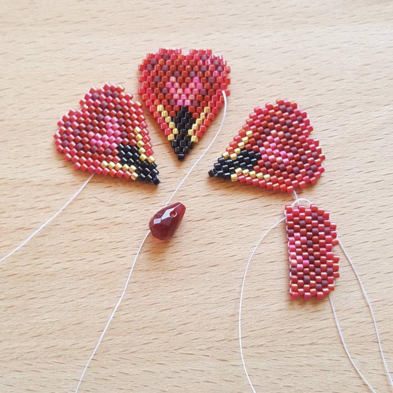Une particularité de la technique de la brique est le tissage lui-même, les perles du rang suivant sont fixées par le fil du rang précédent.