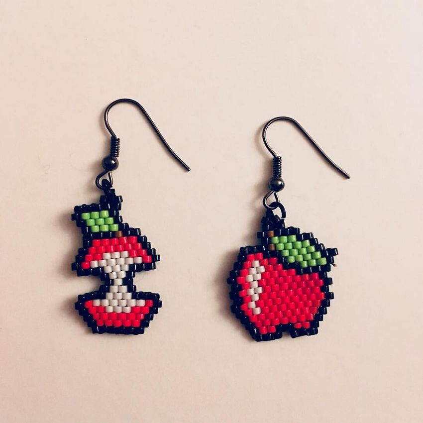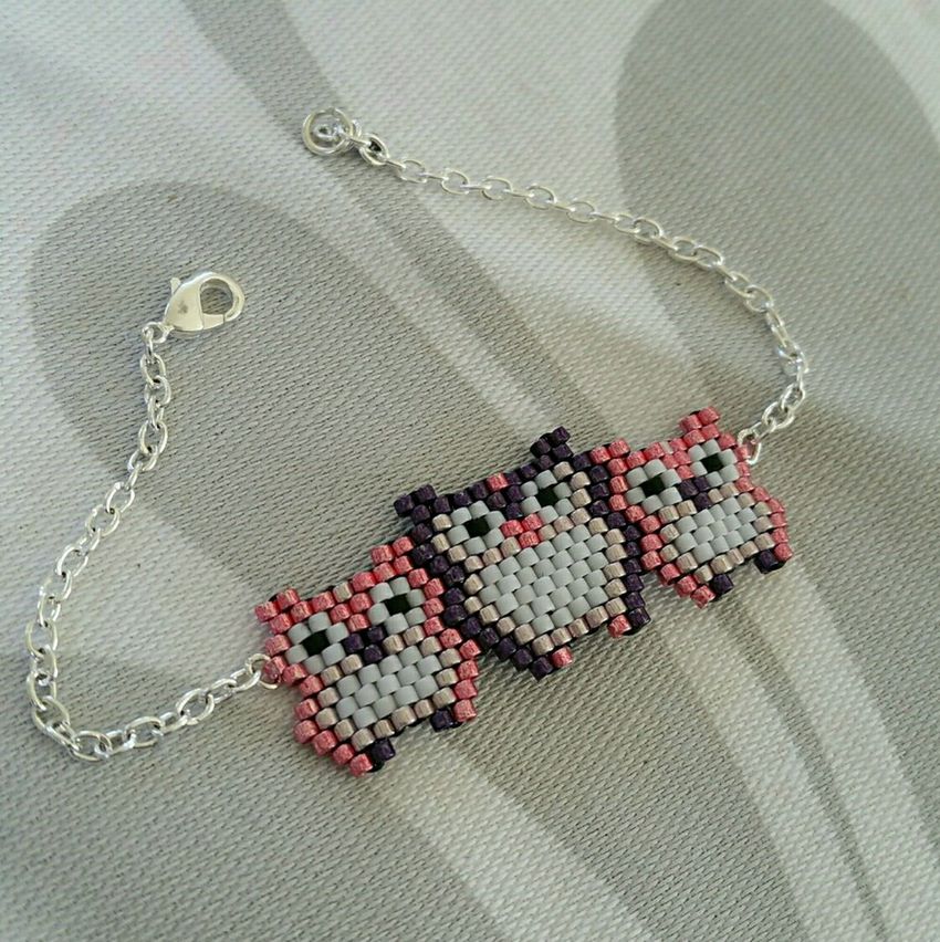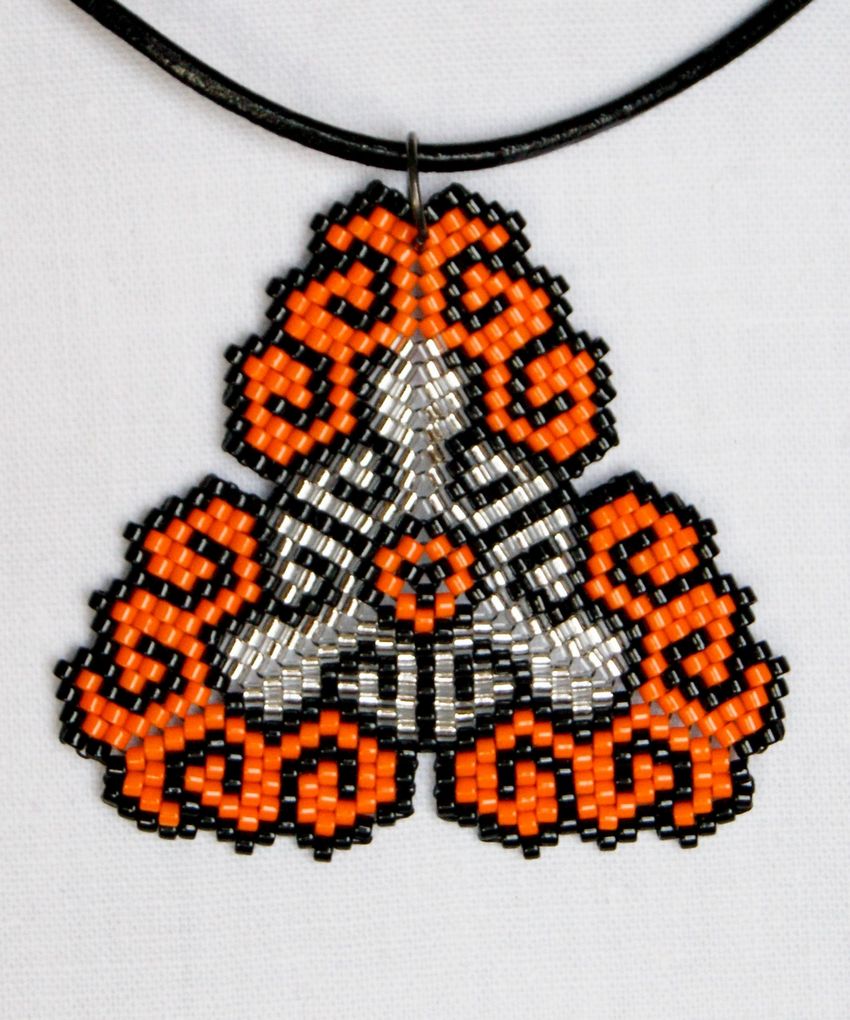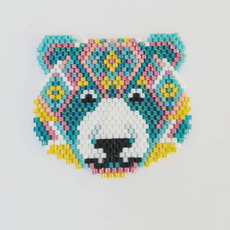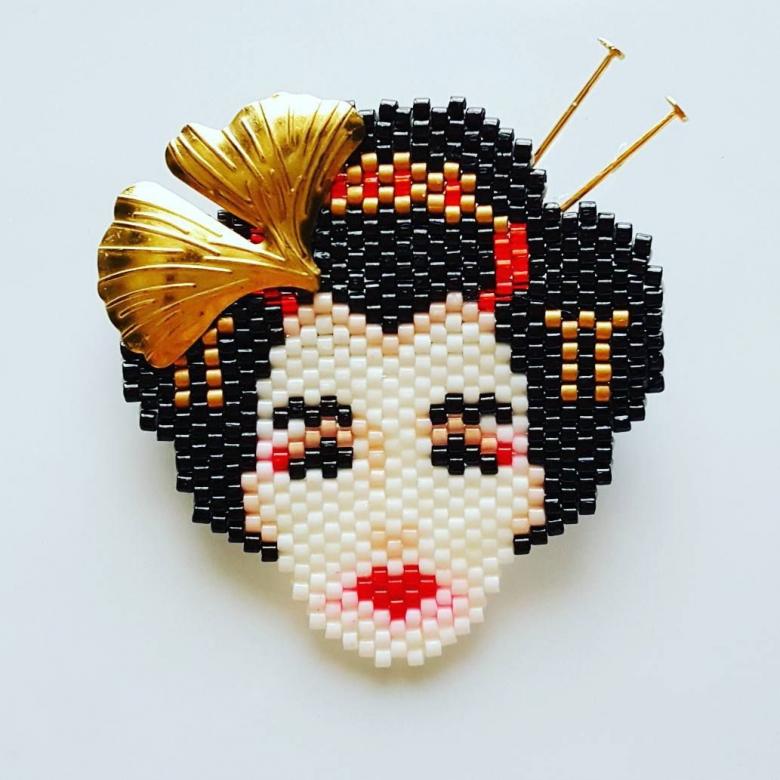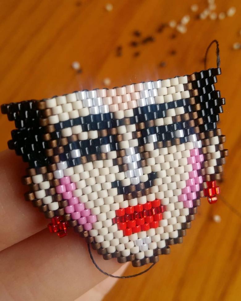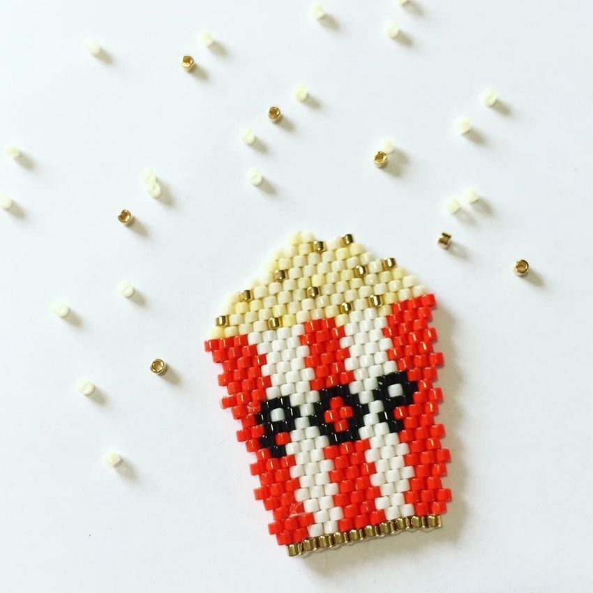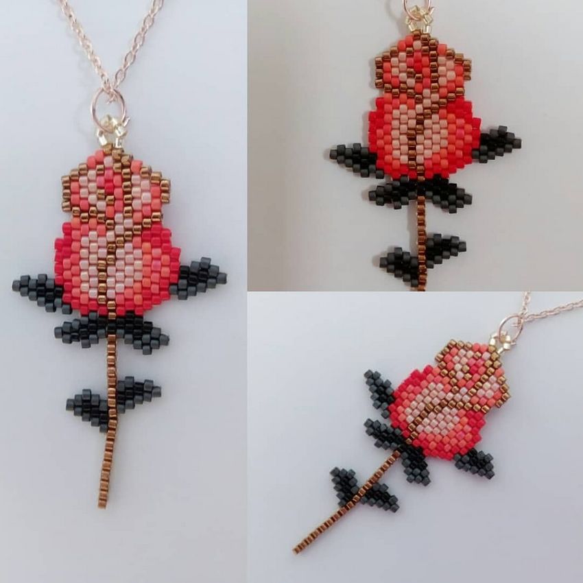 Une particularité de la technique de la brique est le tissage lui-même, les perles du rang suivant sont fixées par le fil du rang précédent.