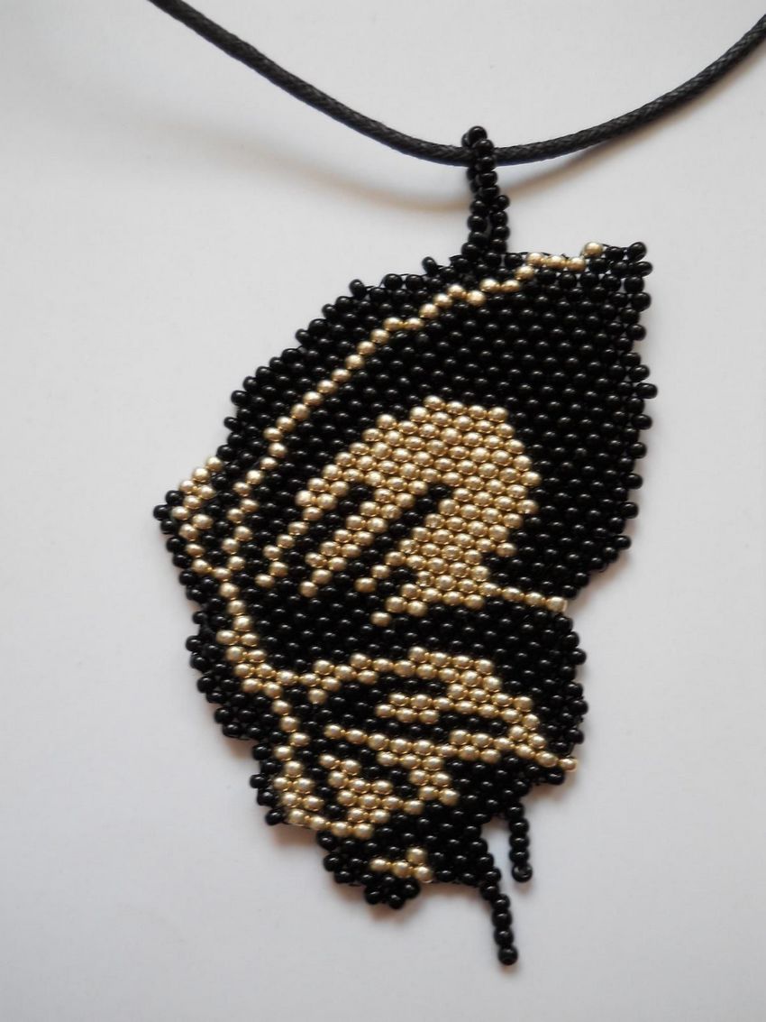 - Au milieu de la troisième rangée, vous devrez remonter et faire une première rangée de perles noires.