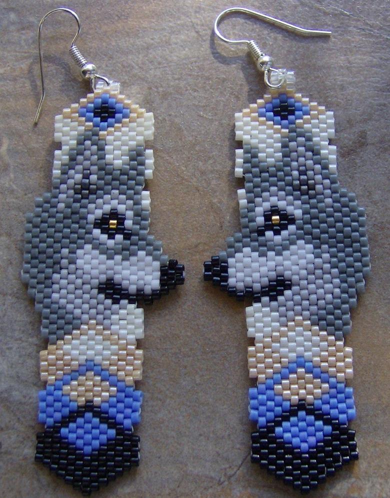 - La ficelle est prise dans une longueur d'un mètre et demi. On y enfile les perles comme indiqué sur le schéma. Le travail commence par un rang sous les oreilles, elles sont faites en dernier.