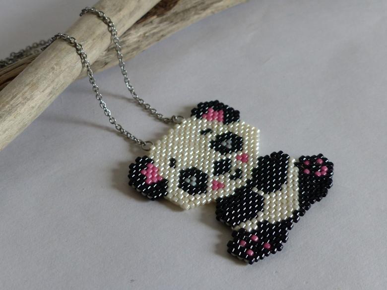 - Perles noires, grises, blanches et vert clair.