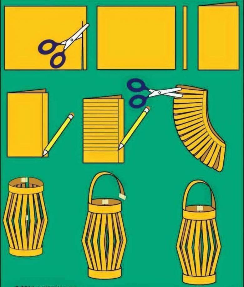 Pour une lanterne faite maison, il faut avoir : du papier de couleur, des ciseaux, de la colle, une règle et un crayon. Une fois que vous avez les fournitures, mettez-vous au travail :