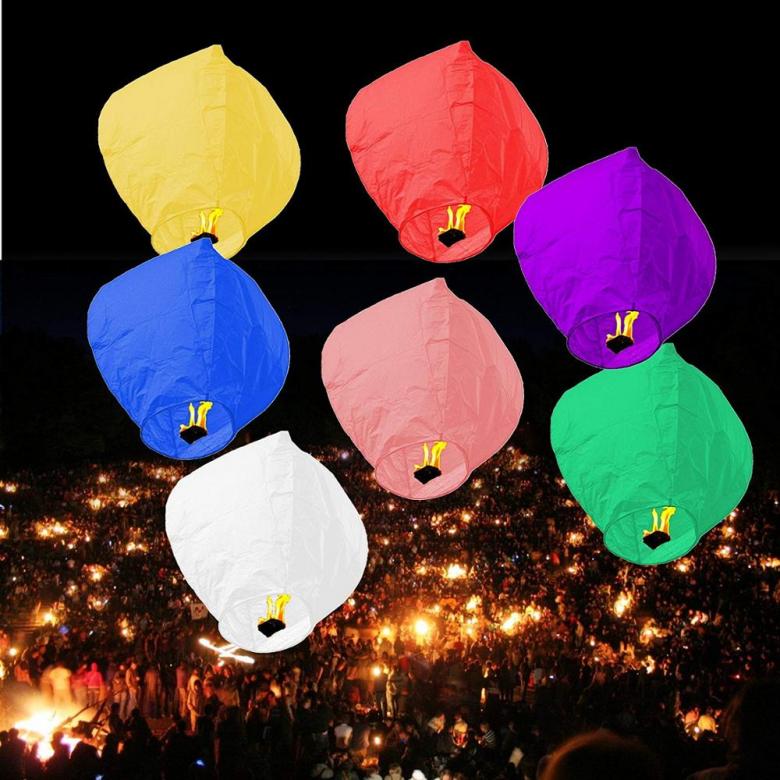 Choisissez des formes de ballons ou de cylindres selon vos besoins. Ils décollent de la même manière que les ballons. Les frères Montgolfier remplissaient autrefois des obus d'une substance fumante qui voyageait à des kilomètres dans l'air. Le principe de l'ozone chauffé, qui devient plus léger en raison d'une réduction de sa densité, est déclenché. Ils sont propulsés par la différence entre la densité de l'air intérieur et extérieur. Pour les lanternes, il est recommandé de choisir un moment sombre de la journée, sans nuages. En moyenne, ils durent jusqu'à 20 minutes en vol.