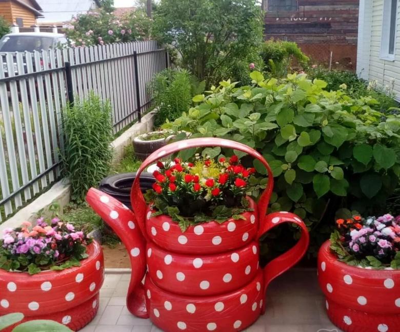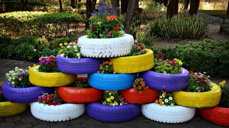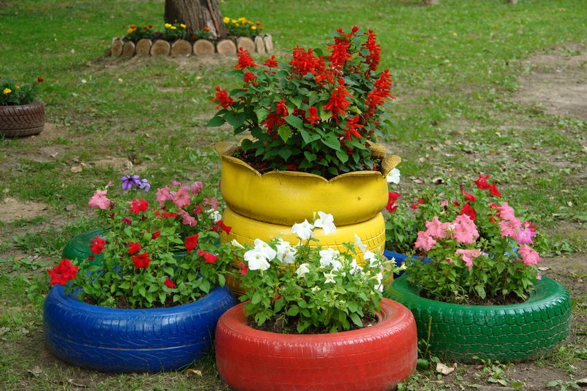 Un parterre de fleurs réalisé de vos propres mains à partir de pneus est l'un des moyens de décoration les plus courants. Les pneus qui ne peuvent pas être utilisés pour l'usage auquel ils sont destinés parce qu'ils sont endommagés sont les plus souvent utilisés.