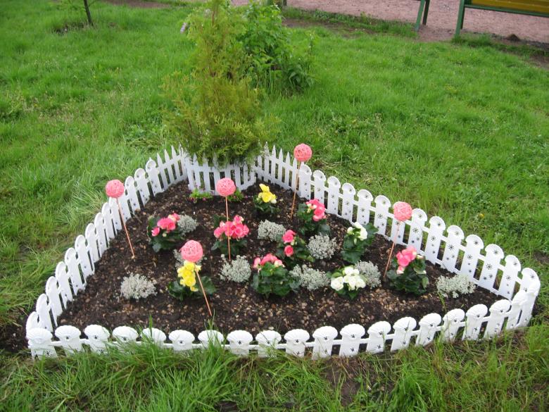 Pour que le parterre de fleurs ait l'air fini, il faut faire une belle clôture. Sa tâche sera de mettre en valeur le parterre de fleurs, d'en souligner la beauté. En outre, la clôture est nécessaire pour renforcer le sol, en évitant son enfoncement.