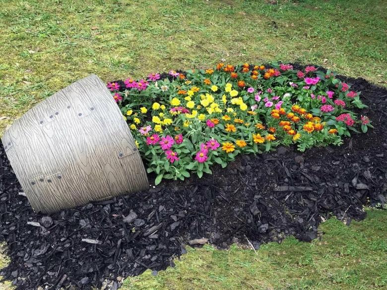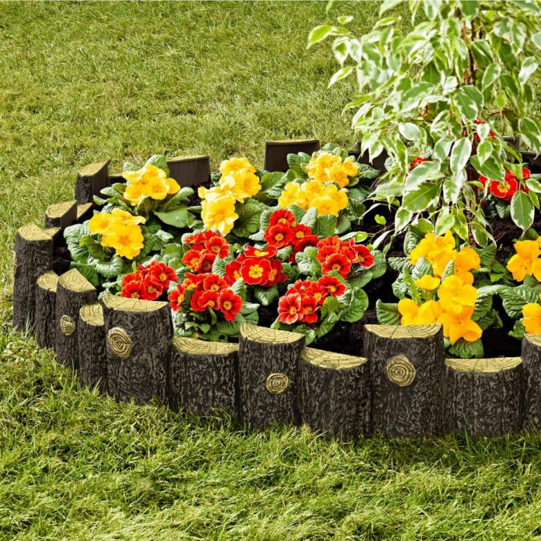 - des rondins, creusés verticalement autour du parterre de fleurs ;