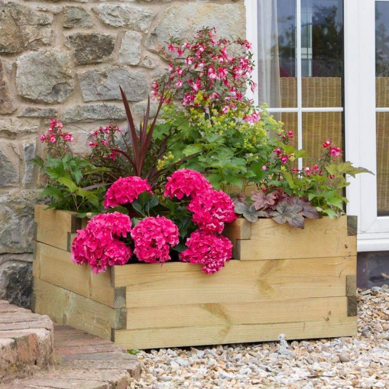 La disposition en pyramide sera superbe. Vous pouvez les fabriquer vous-même à partir de blocs et de planches de bois. Il est également possible d'utiliser des palettes. Vous pouvez simplement peindre la structure dans des couleurs vives et y fixer des pots ou des boîtes pour les plantes.