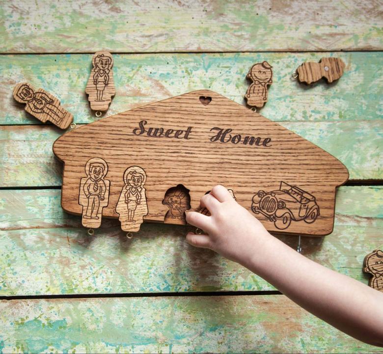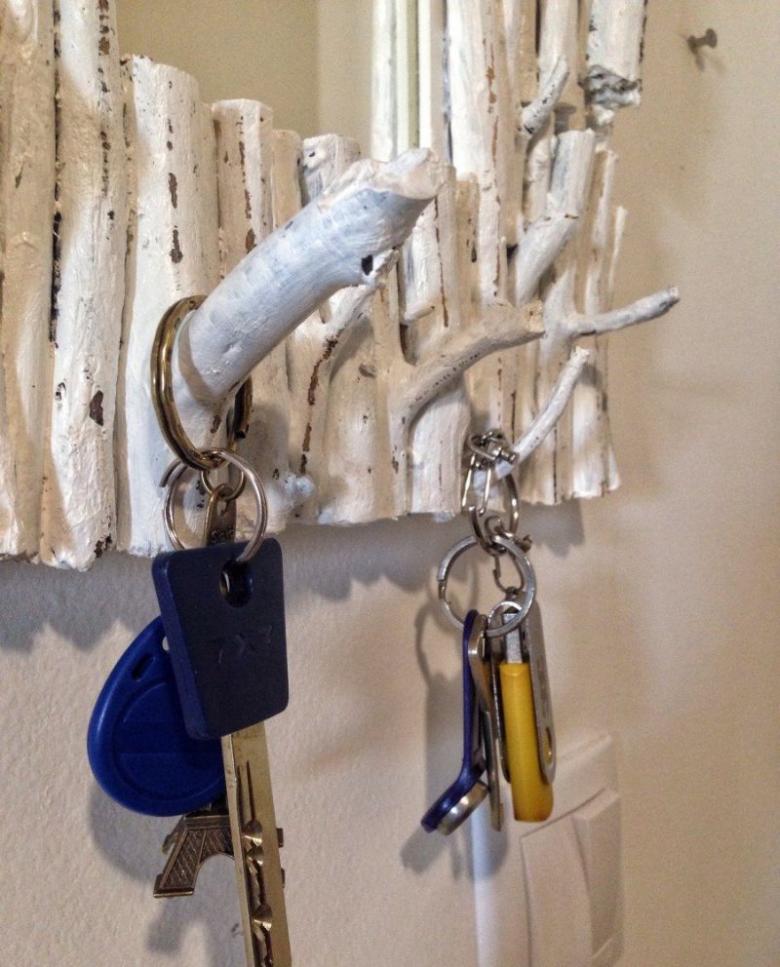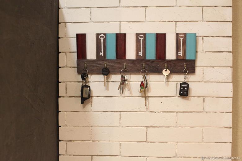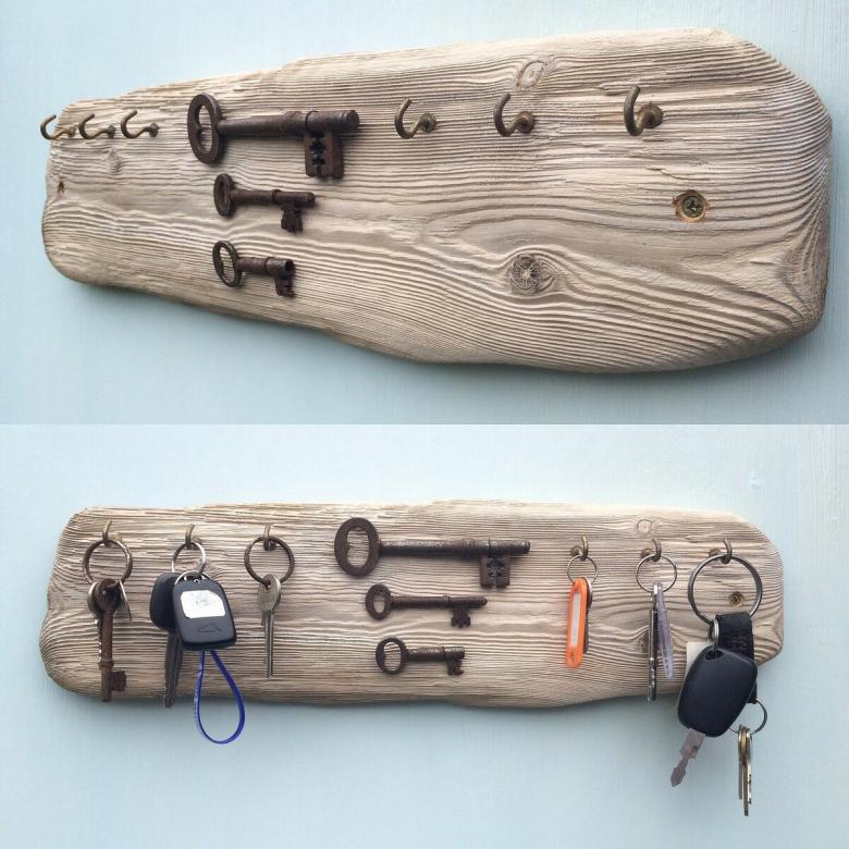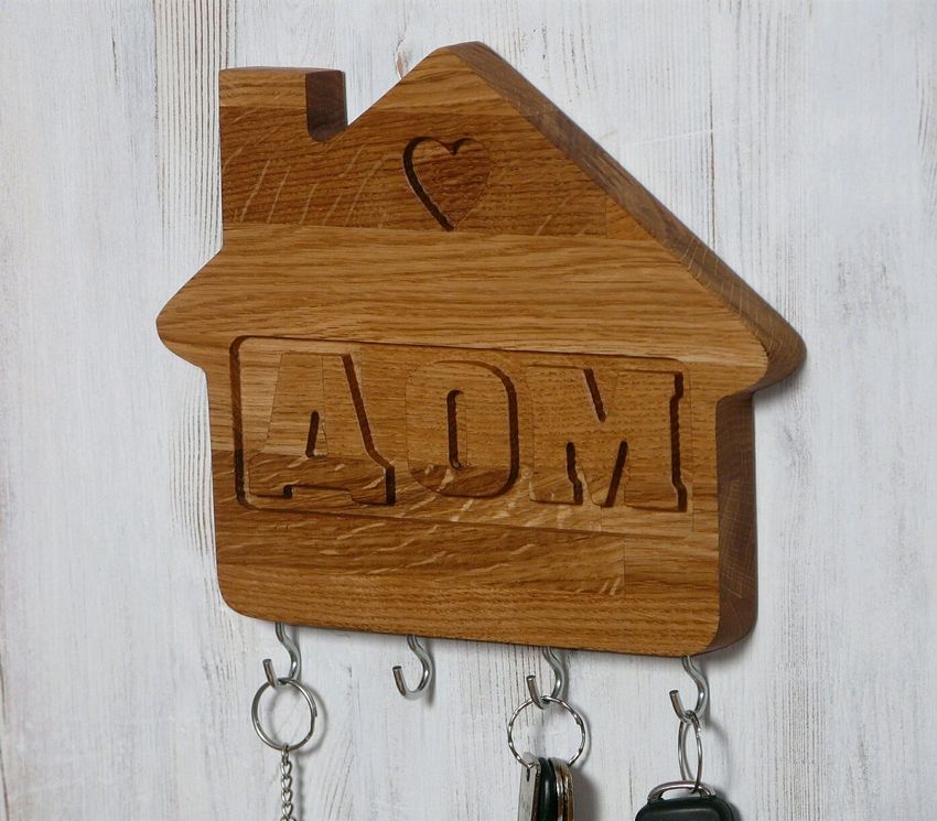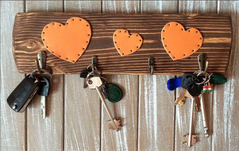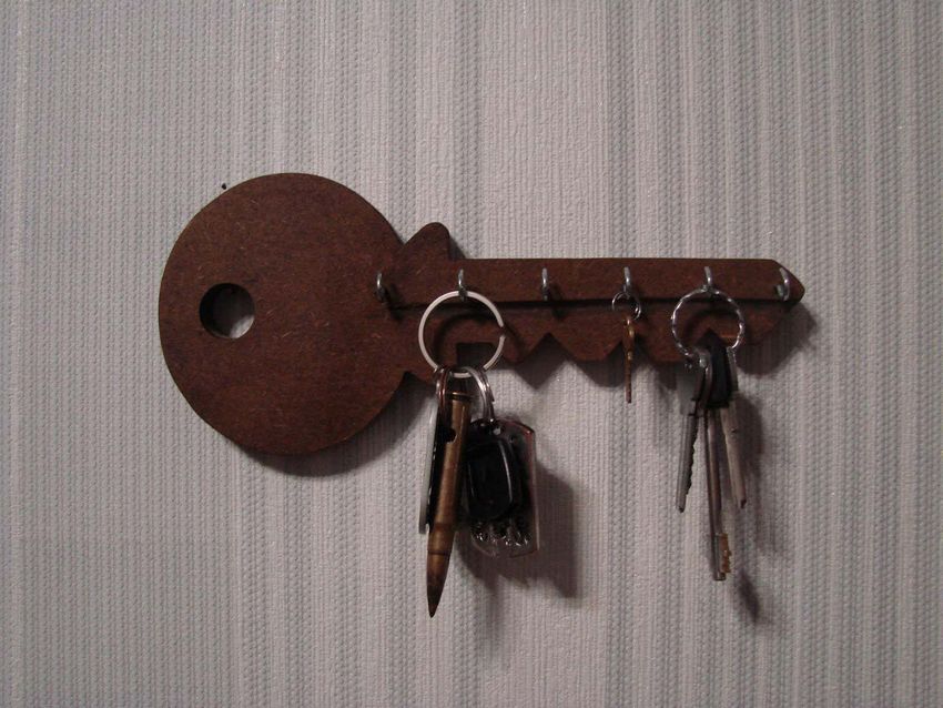 Vous n'avez pas besoin de crochets pour tenir vos clés. Un système de trous est réalisé par sciage dans une pièce de bois massif.