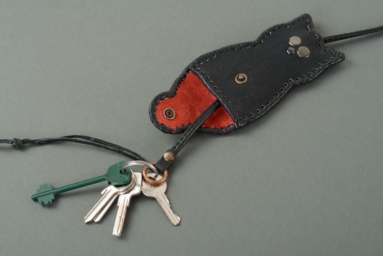 La boîte à clés de poche est une pochette fabriquée à partir de différents matériaux souples. À l'intérieur de ce sac, des boucles spéciales sont prévues pour accueillir les clés. Les boucles sont faites de métal ou de diverses cordes, de morceaux de cuir. Les clés sont fixées dans les boucles.