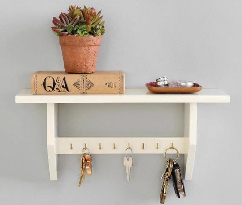 En plus des clés, de nombreuses personnes ont de petits objets comme des peignes, des élastiques, des briquets, etc. sur les étagères de leurs armoires et de leurs murs. Pour vous débarrasser de cet encombrement, vous pouvez fabriquer un porte-clés avec une petite étagère qui convient pour ranger toutes sortes de petites choses.