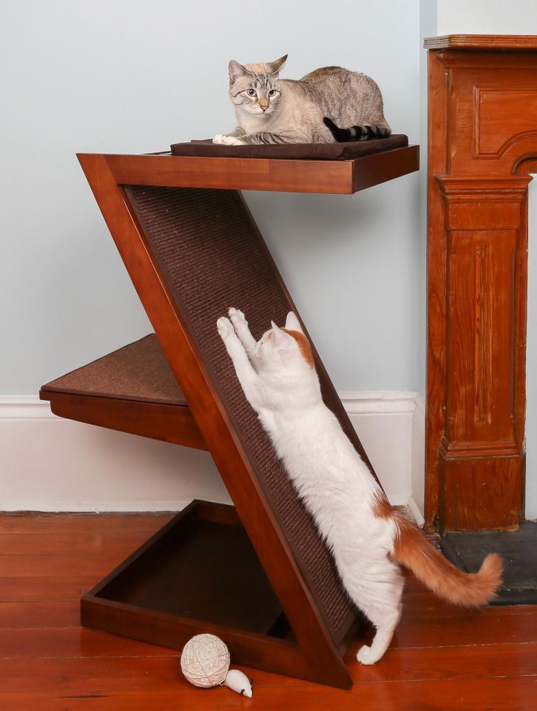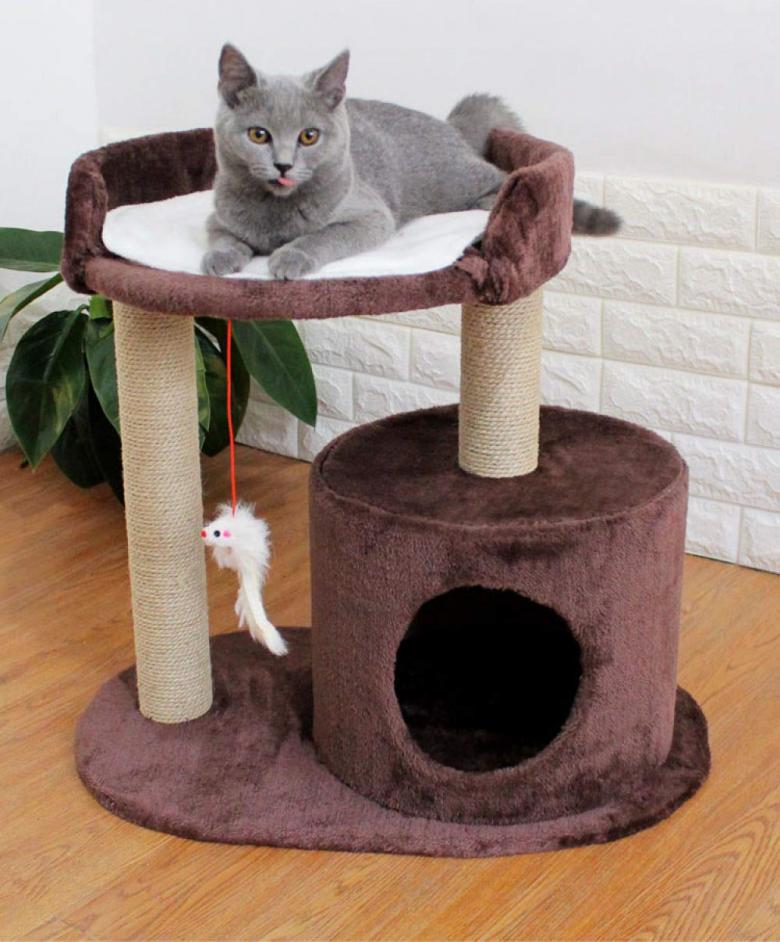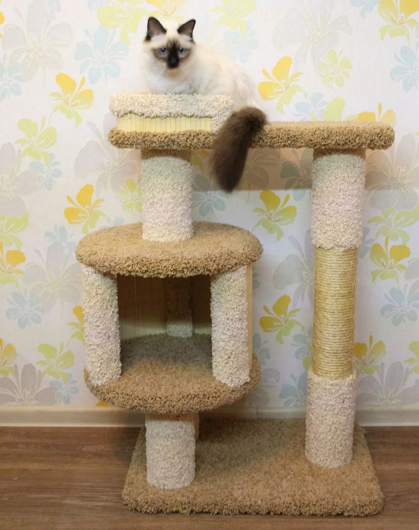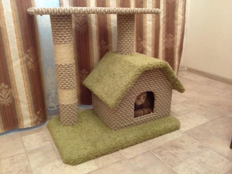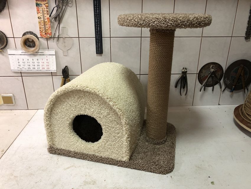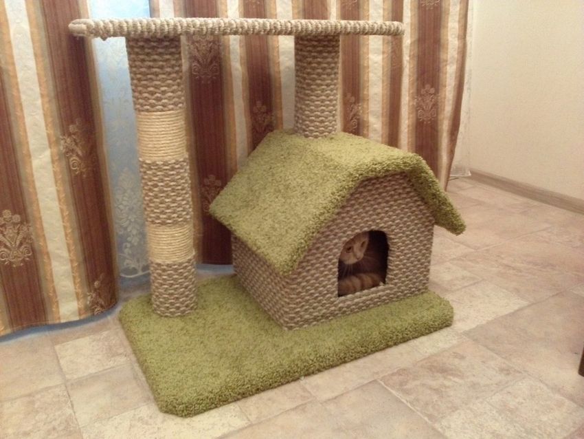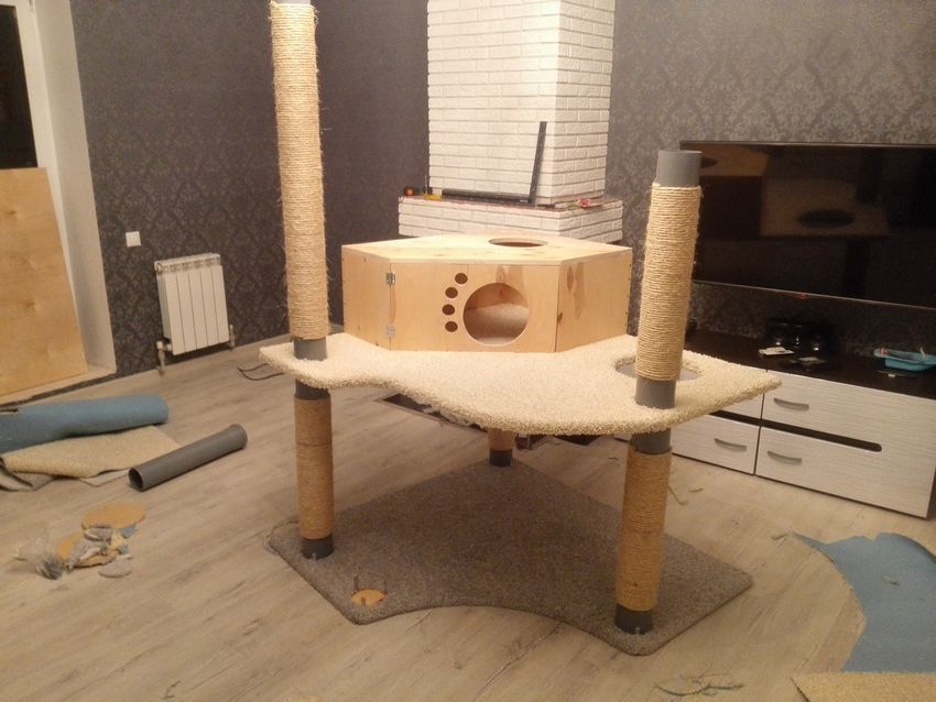 - L'emplacement supérieur du pavillon - les chats aiment se reposer au sommet de la structure. Et un lit placé en dessous peut servir de litière à l'animal.