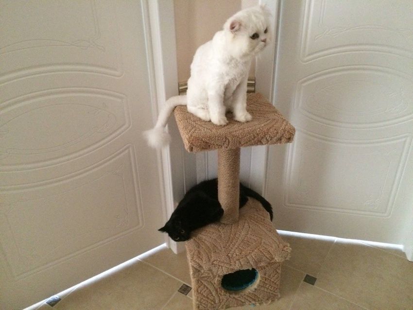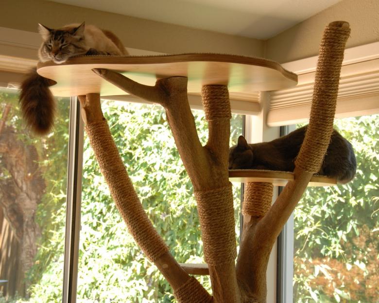Selon la plupart des propriétaires, les poteaux verticaux sont les plus pratiques à utiliser. Ils sont souvent équipés d'accessoires de jeu, notamment pour les chatons. La construction elle-même peut être installée sur n'importe quelle surface : sol, murs et même plafond.