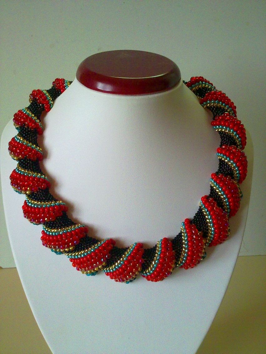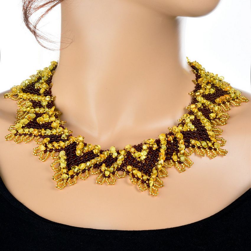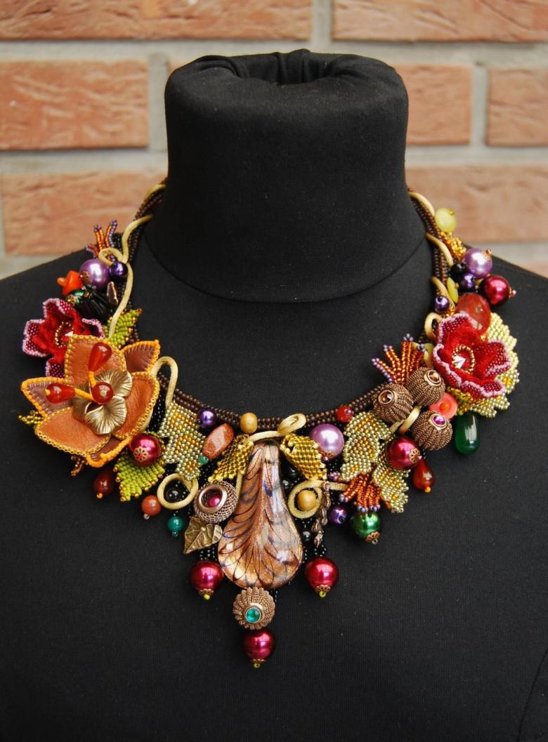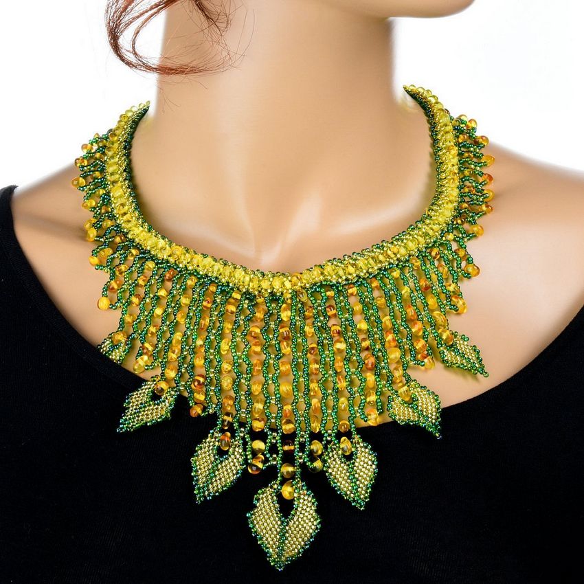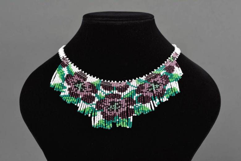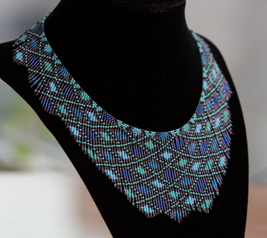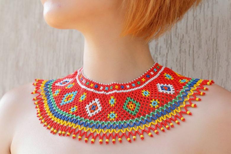 L'originalité d'une pièce dépend largement de l'habileté de l'artisan à adapter la forme et les couleurs du collier. Le collier peut être réalisé aussi bien avec des éléments contrastés qu'avec une palette de couleurs très proches les unes des autres.